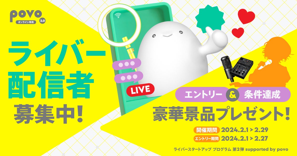 KDDIは2024年2月1日(木)から、オンライン専用通信料金プラン「povo2.0」において、ライバー(配信者)を対象としたサポートプログラム「ライバースタートアッププログラム 第2弾 supported by povo」を開始します。また、連動企画として、バーチャル・シンガー初音ミクの国内初の現代アート展「ART OF MIKU」とのコラボキャンペーンも同日より開始します。