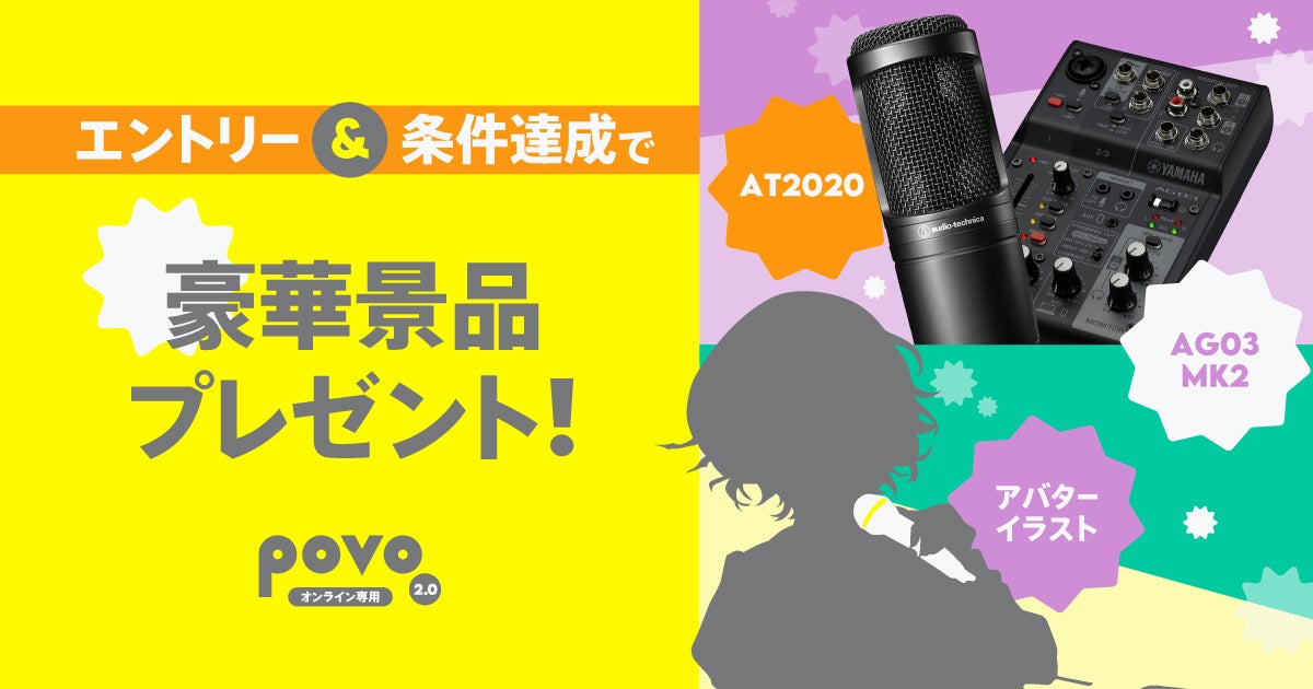 条件達成者全員3万円相当のミキサー&マイクセットやSKIMAの人気イラストレーターによる配信用イラストがもらえる!初音ミク現代アート展「ART OF MIKU」×povoキャンペーンも同時開催!