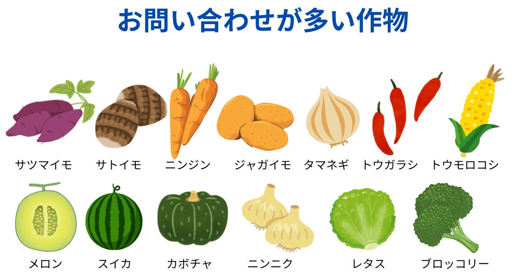 サツマイモ、サトイモ、ニンジン、ジャガイモ、タマネギ、トウガラシ、トウモロコシ、メロン、スイカ、カボチャ、ニンニク、レタス、ブロッコリーなどでご利用いただいております。なお、穴あきマルチのご要望にもお応えし、この度ご注文受付を開始しました。