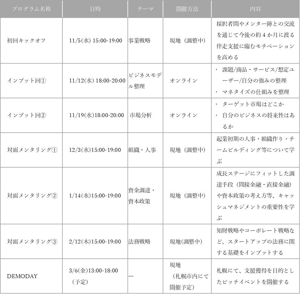 【プログラムの詳細】 https://hokkaido-startup-studio.jp/advanced/