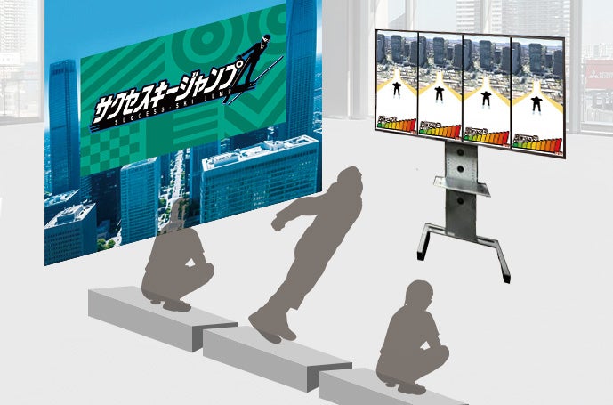 スキージャンプをモチーフに、踏切台からタイミングよくジャンプすれば高得点となる競技です。ビジネスで大きな成功を収めるには時に大きく飛躍する力が重要であるという考え方から着想を得ました。ビジネスマンに不可欠な「集中力」「挑戦する勇気」「リスク管理」が勝敗の鍵です。