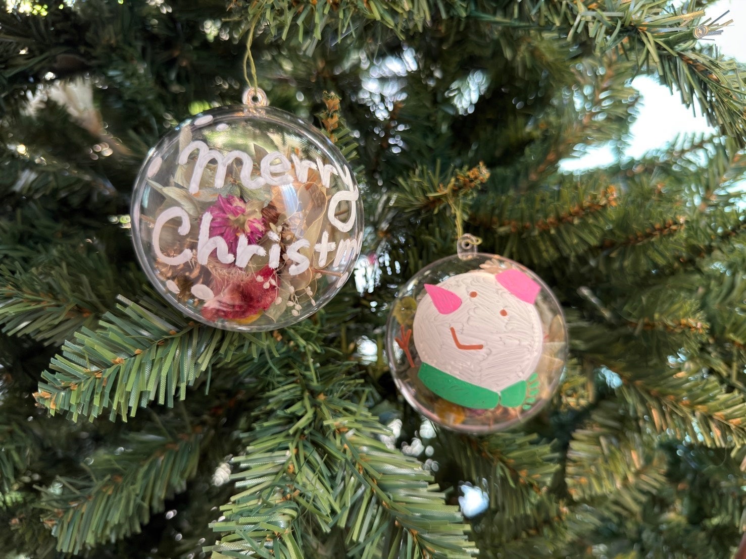 ブーケを作る際に出たお花などの端材を集め、世界に一つだけのオリジナルオーナメントを作ってみよう!2つお作りいただき、1つは館内のクリスマスツリーに飾らせていただきます。もう1つはお持ち帰りいただき、お家でお楽しみください!