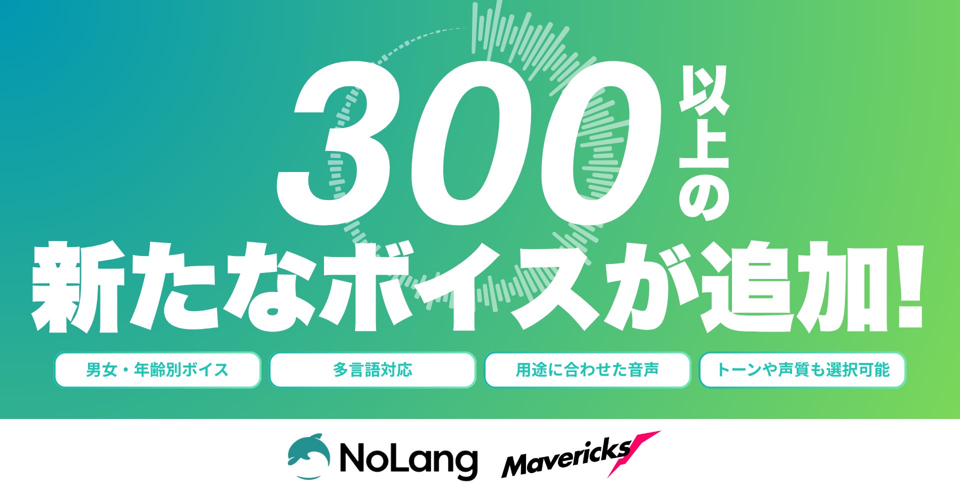 日本発、動画生成AI「NoLang」を提供する株式会社Mavericks(本社:東京都文京区、代表者:奥野 将太)は、日本初、日本最大(※)の動画生成AI「NoLang」に300種類以上の高品質な音声を追加し、同時に最適な音声を即座に抽出できる「ボイス検索機能」を実装いたしました。本アップデートにより、ショート動画の視聴維持率を高めるテンションの高い音声から、IRやブランディングで信頼を醸成する低音で重厚なボイスまで、あらゆるビジネスシーンに最適な音声が利用可能となります。動画の質を左右する「聴覚情報」を最適化することで、マーケティング、広報、社内教育といった企業活動の成果創出を強力に支援します。