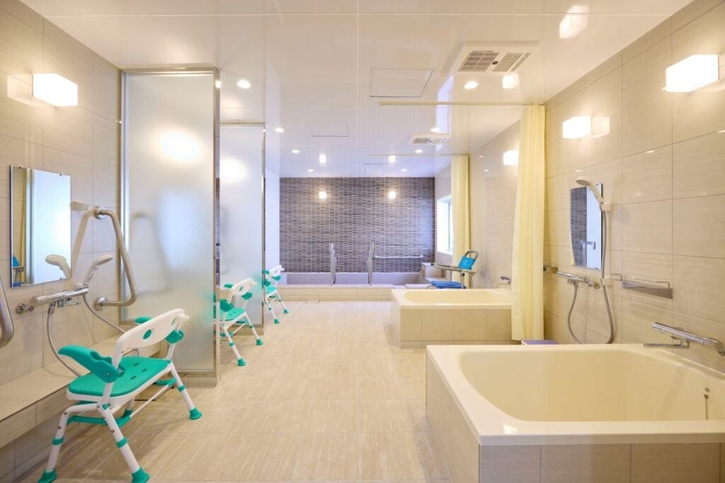 自然光によって明るく開放的な浴室は、洗い場を4か所設置、浴槽も個別浴槽2台と大浴槽を備え、様々なニーズに対応できます。また、入浴後にダイニングへご移動する前に身だしなみを整え、気持ちを高揚できる個別対応のスペースとして’スタイリングコーナー’を設けました。特に女性に喜んでご利用いただけるスペースとしてご期待いただけます。