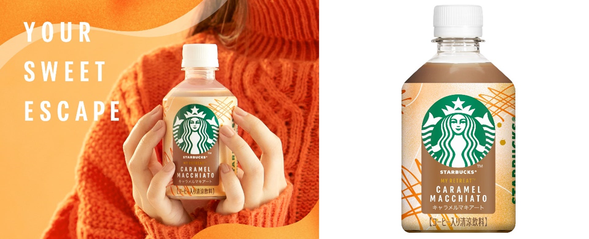 スターバックスから日本初の“自動販売機限定商品”が登場 ペットボトル入りコーヒーシリーズ「スターバックス® MY RETREAT™ キャラメルマキアート」10月7日(火)より新発売