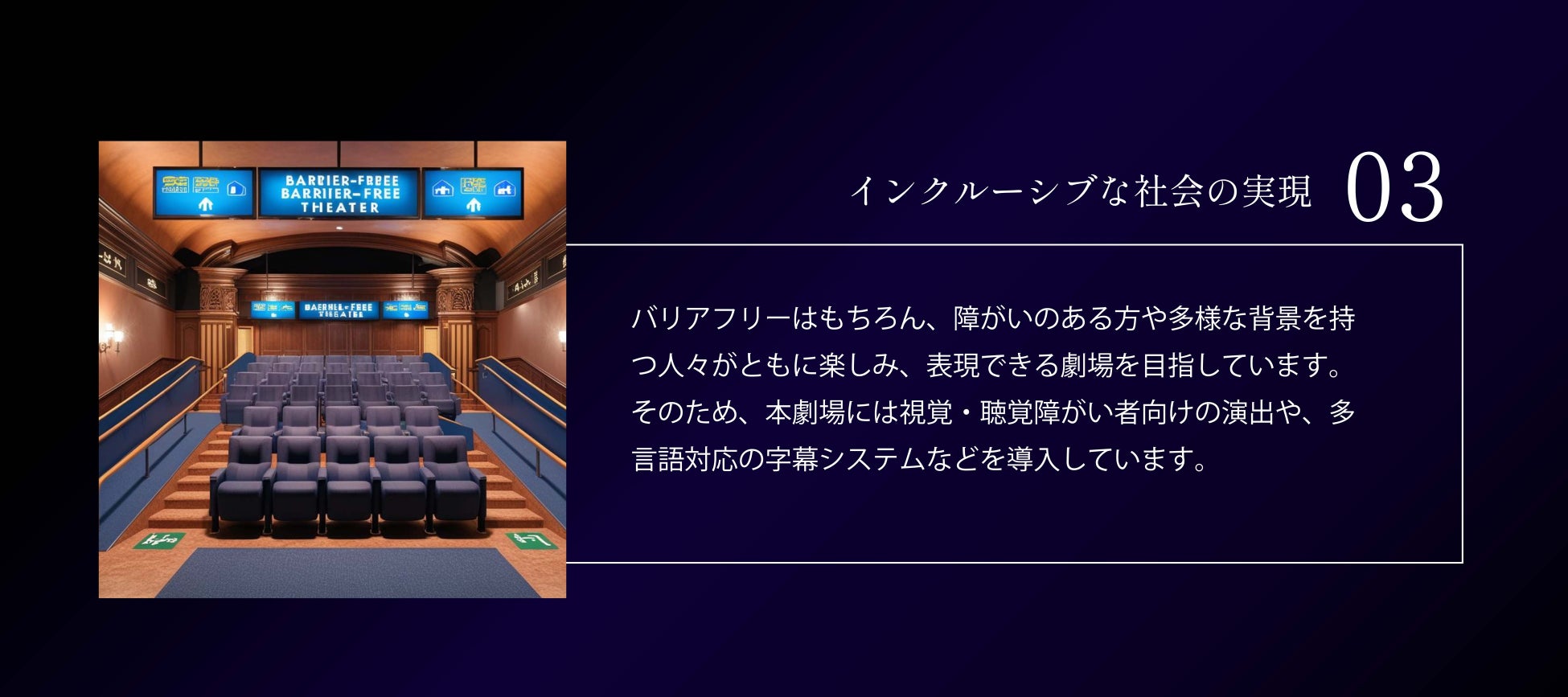 そして次に、私たちが着目したのが「文化の力」です。スポーツが人々の心を動かすように、芸術や演劇、音楽もまた、人生に彩りを与え、感情を揺さぶり、人と人をつなぐ力を持っています。桜十字は、「WELL-BEING FRONTIER」として、人々の“生きるを満たす”ための新たな挑戦として、文化の拠点となる“劇場”を創出します。スポーツと文化、異なるように見えて、その本質はどちらも人の心を豊かにするもの。私たちは、より多くの人が感動を共有できる場を生み出し、地域とともに、より豊かな未来を築いていきます。