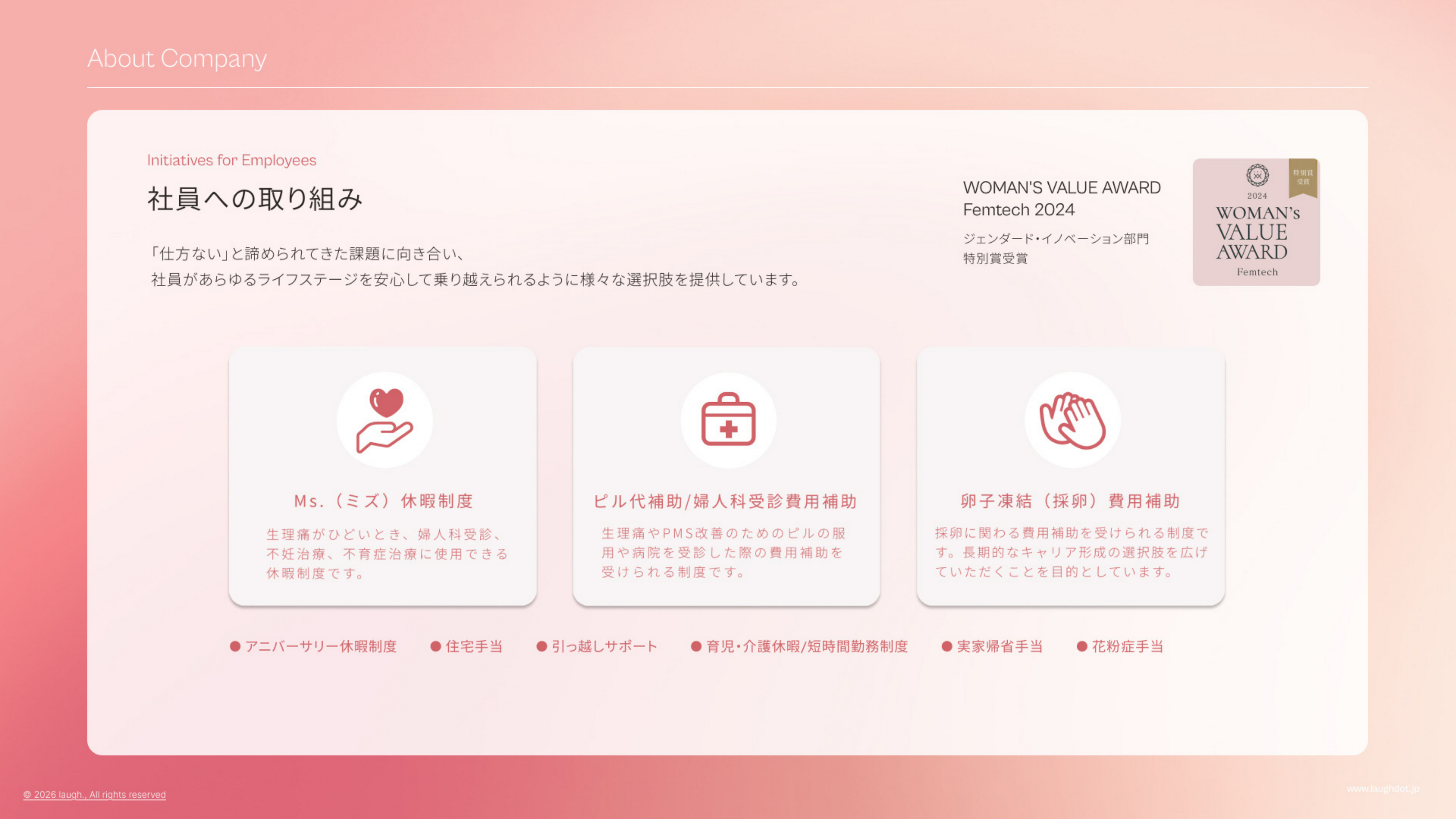 株式会社laugh.は今後も、従業員一人ひとりが心身ともに健やかに働ける環境づくりを推進するとともに、「「私に生まれてよかった」と思える人生を。」というミッションのもと、社会全体のヘルスリテラシー向上にも貢献してまいります。