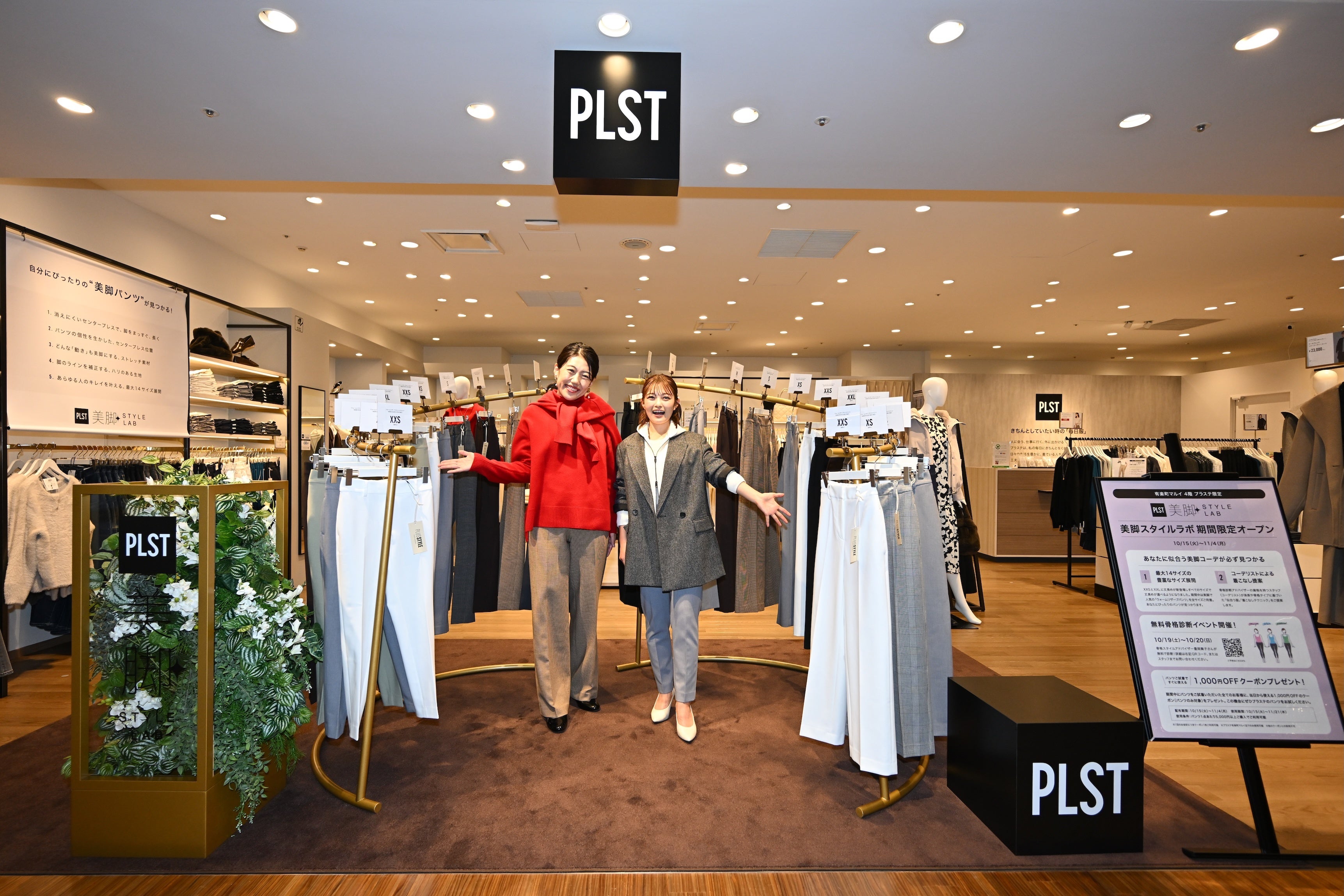 プラステが実施した調査では、働く女性の2人に1人が自分に似合うパンツのサイズを選ぶのが難しいと回答。さらに4割の方が「丈」が合わないことにお悩みを抱えていることがわかりました。そこで、プラステではパンツ選びやコーディネートのお悩みを解決するべく、コーデリスト(骨格診断アドバイザー資格保有者)がお客様の身長・体型にあったパンツ選びを提案、自分にぴったりのコーディネートを見つけることができる期間限定のPOP UP「PLST 美脚スタイルラボ」を本日10月15日より、プラステ有楽町マルイ店で開催。