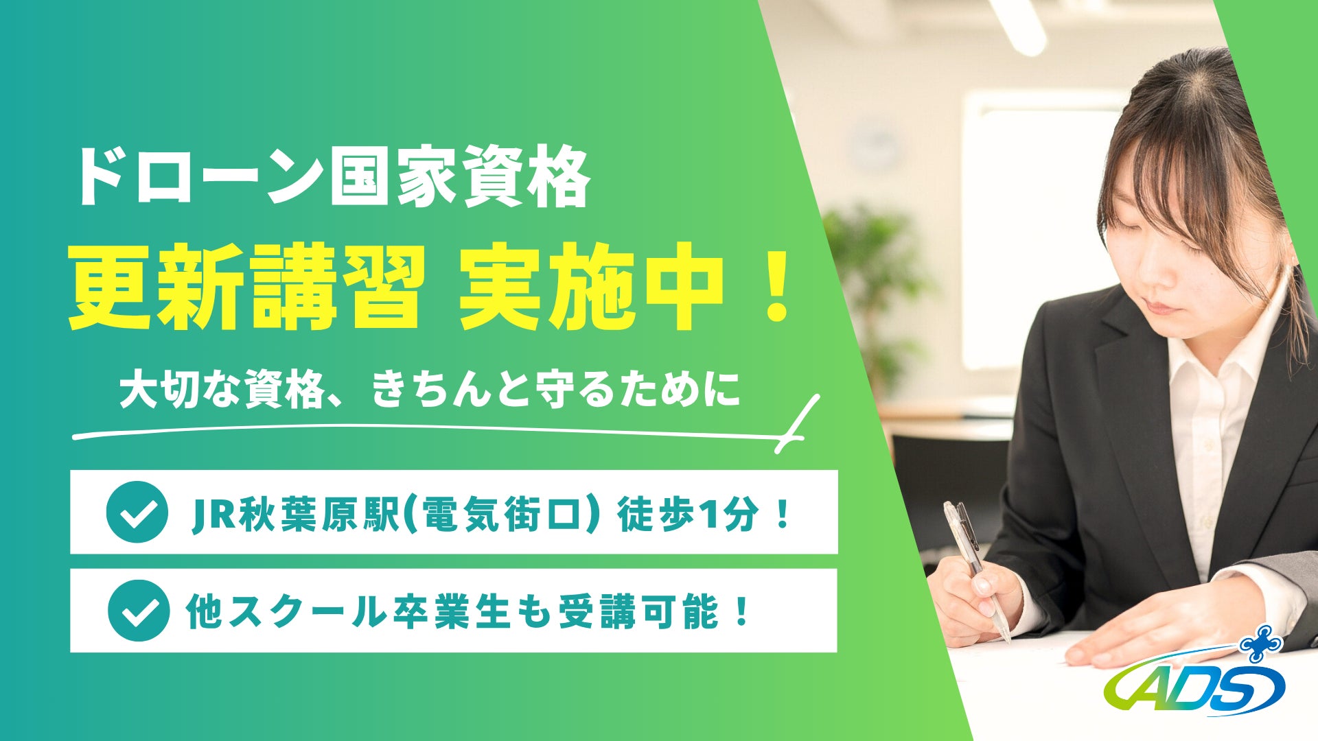 秋葉原ドローンスクールでは、2025年10月よりドローン国家資格の更新講習を実施しています。
