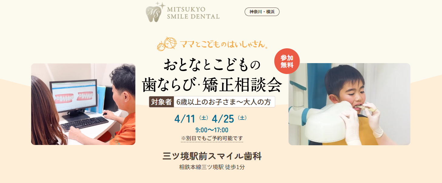 こうした学術活動を通じて得られた専門的知見を地域の患者さまへ還元する取り組みとして、三ツ境駅前スマイル歯科では、定期的に「大人とこどもの歯ならび・矯正相談会」を開催しています。