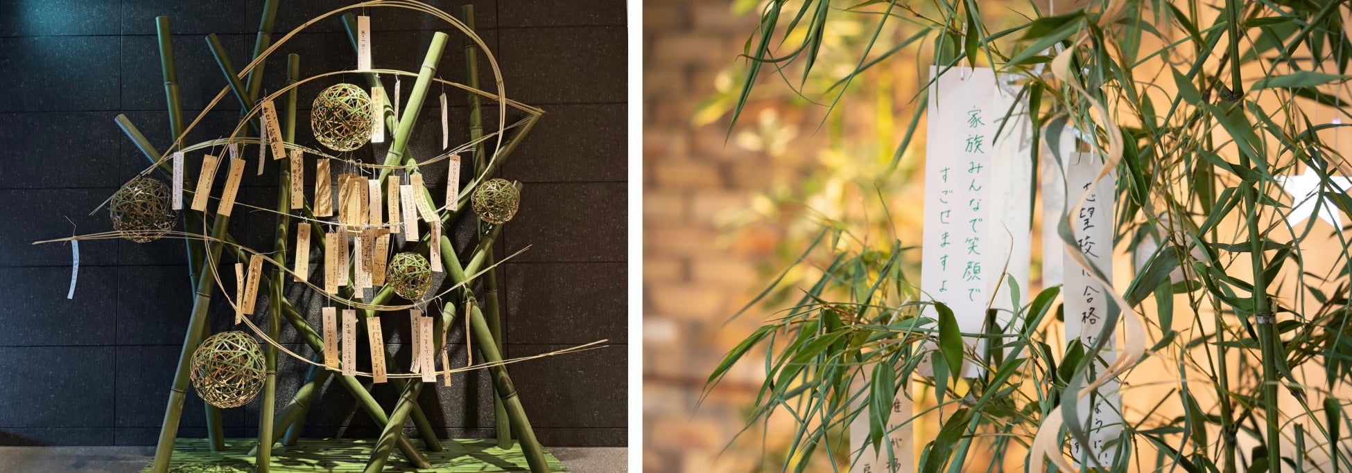 本イベントでは、各店舗のロビーやエントランスに七夕笹飾りの展示、そしてご宿泊のお客様に願い事を記入していただく短冊には、日本の竹を100%原料とした「竹紙」を使用します。また、お客様の願いが込められた短冊は、イベント終了後、七夕まつりで名高い仙台の大崎八幡宮へ奉納され、皆様のお願いを天までお届けいたします。