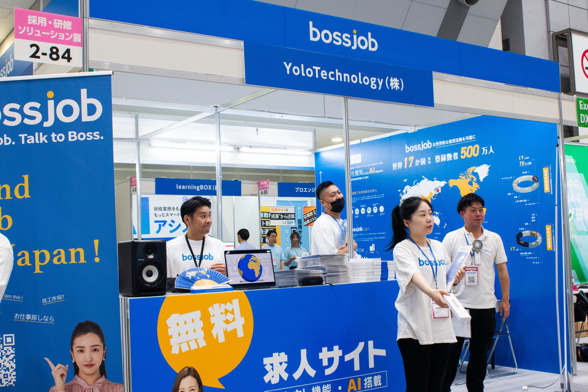 ブースでは、深刻化する日本の人手不足に対し、bossjobが提供する「外国人材の直接採用支援サービス」について提案を実施。
