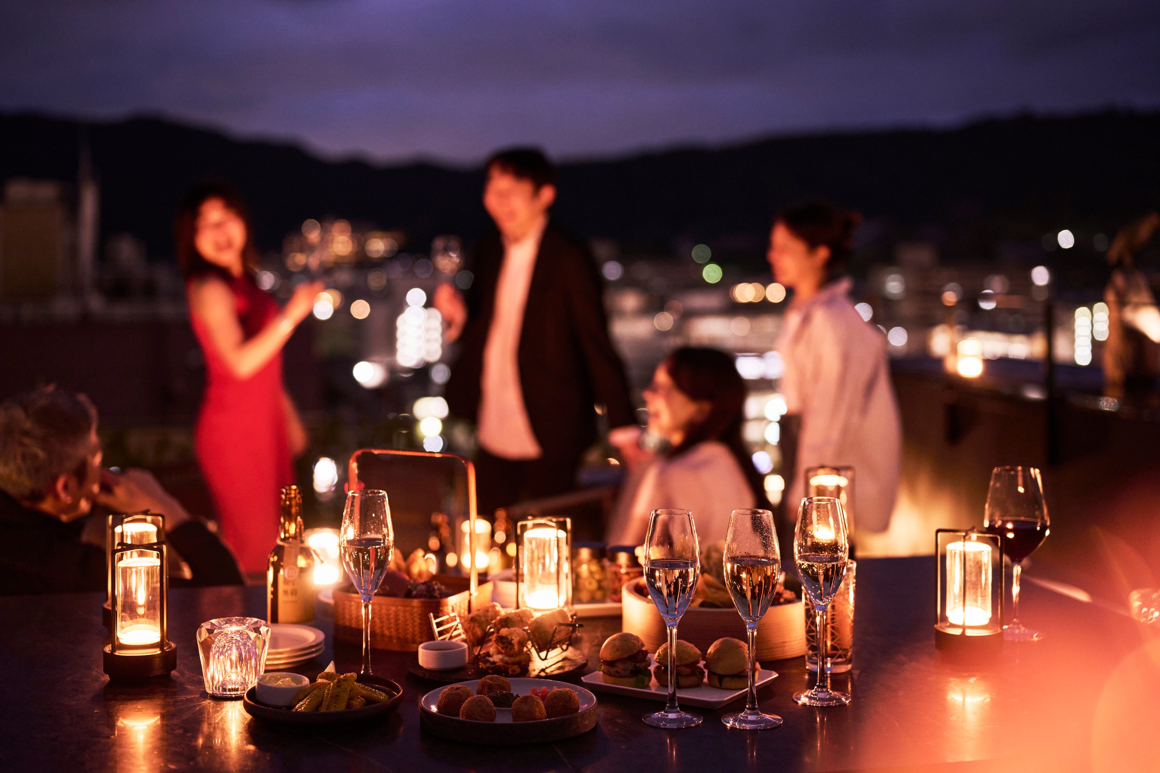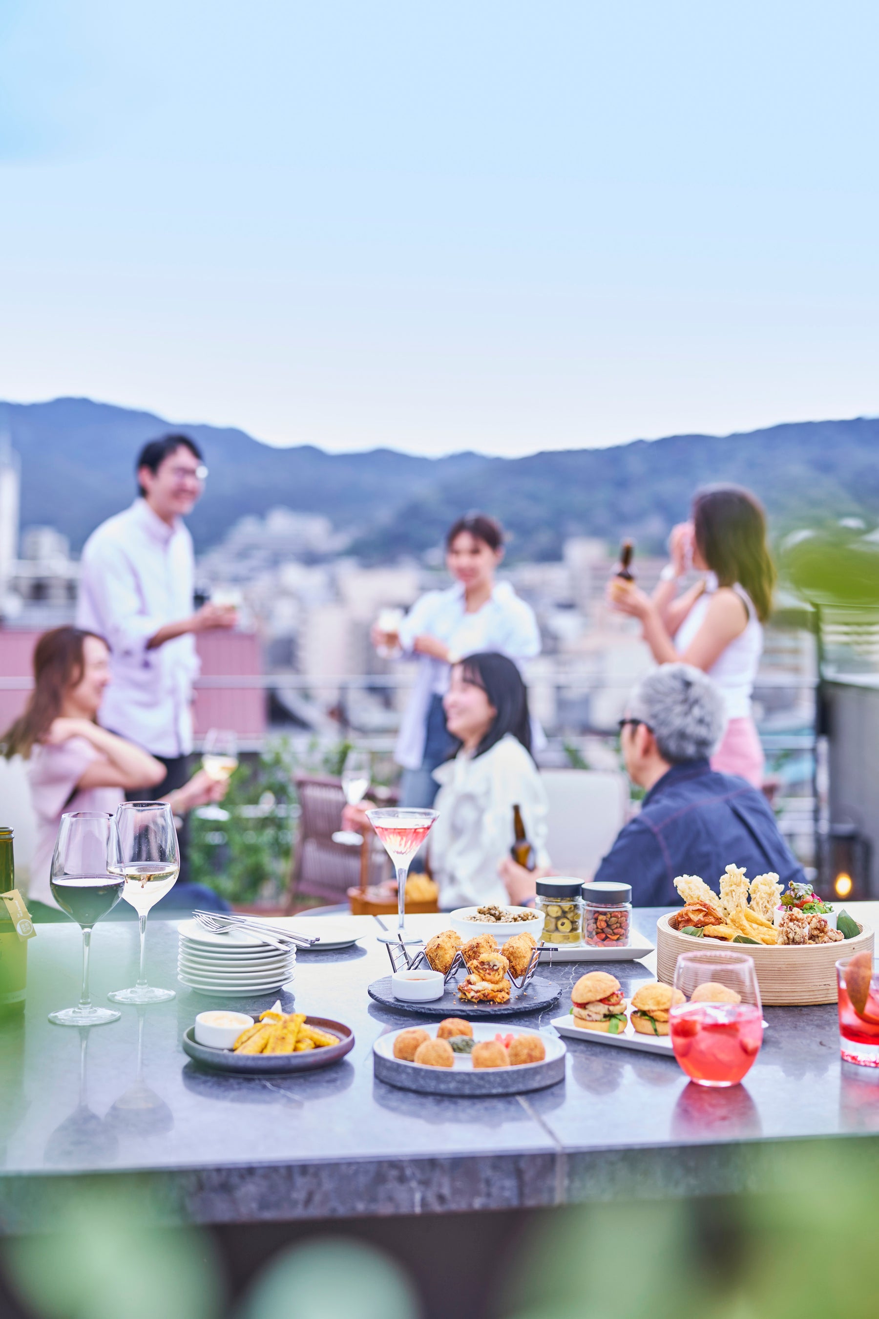 静かに広がる京都の空、季節の香りを運ぶそよ風と空を舞い交う鳥たち、そしてそっと寄り添う月。開放と静寂がひとつに溶け合う「クラウドネスト・ルーフトップバー」は、自然の息づかいを五感で受け止め、心の奥までほどける空間です。また今回の春季営業開始に伴い、メニューも新たに刷新。香り・食感・彩りを丁寧に重ねた一皿から、シェアで楽しめるプレート、遊び心あふれるシグネチャーメニューまで、ここでしか出会えない料理の数々を揃えました。華やかな女子会や、ふたりだけの大切なひととき、お仲間とのお集まりなど、多彩なシーンに寄り添い、それぞれの時間を美しく演出します。さらに今年は天空のバーならではのエンターテインメントカクテルも登場。京都の風がそっとほどく心に、ひとしずくの驚きと余韻を添えます。