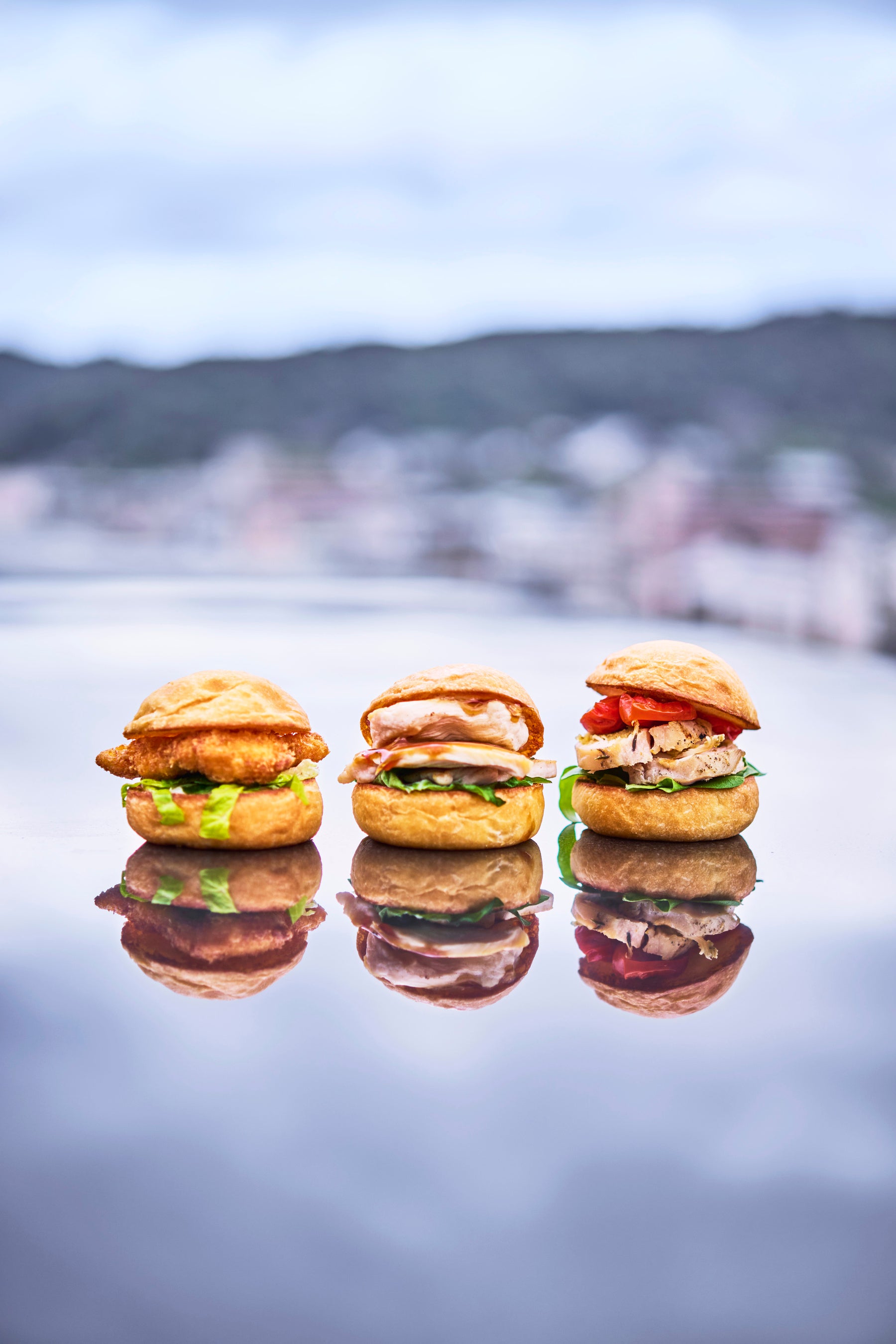 クラウドネストの誇りを込めたシグネチャーメニュー。近江牛パテの力強い旨みをバジルペーストとブッラータのクリーミーさが包み込み、京都産の漬物サルサが鮮烈なアクセントを添える唯一無二の“天空バーガー”。その他、味の三重奏を奏でるチキンスライダートリオやシュリンプ&チップス、クラシックラザニアを遊び心あふれる“串”スタイルにアレンジしたラザニア串もご用意しております。
