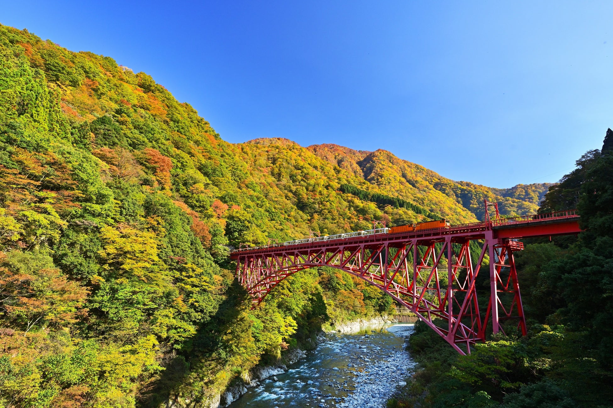 トロッコ電車に乗って黒部峡谷の紅葉をぜひお楽しみください。