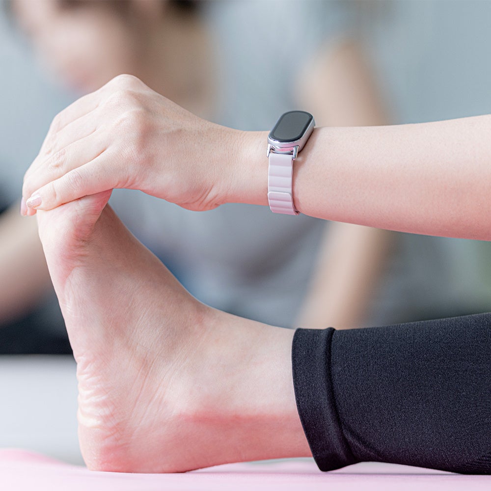 しなやかなシリコン素材のバンドは、マグネット仕様で簡単に適切な位置で「ピッタリ」と装着することができます。