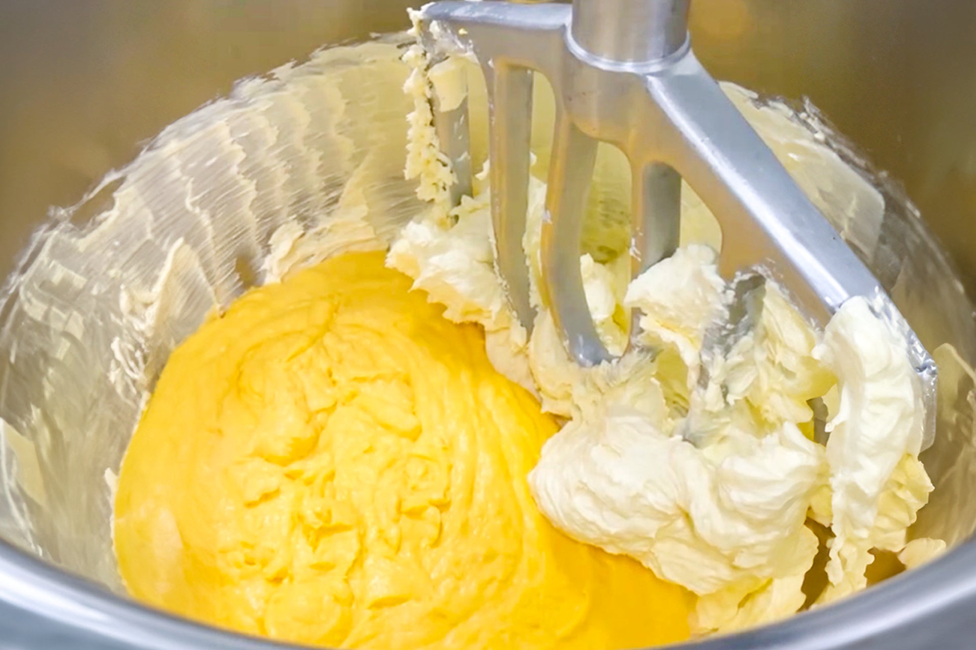 実はこのカスタード、ちょっとした“ひみつの素材”を加えてじっくり炊き上げているんです。その“ひみつの素材”とは……練乳。練乳を加える事で、コクのある濃厚さと、やさしいミルキー感を生み出しています。