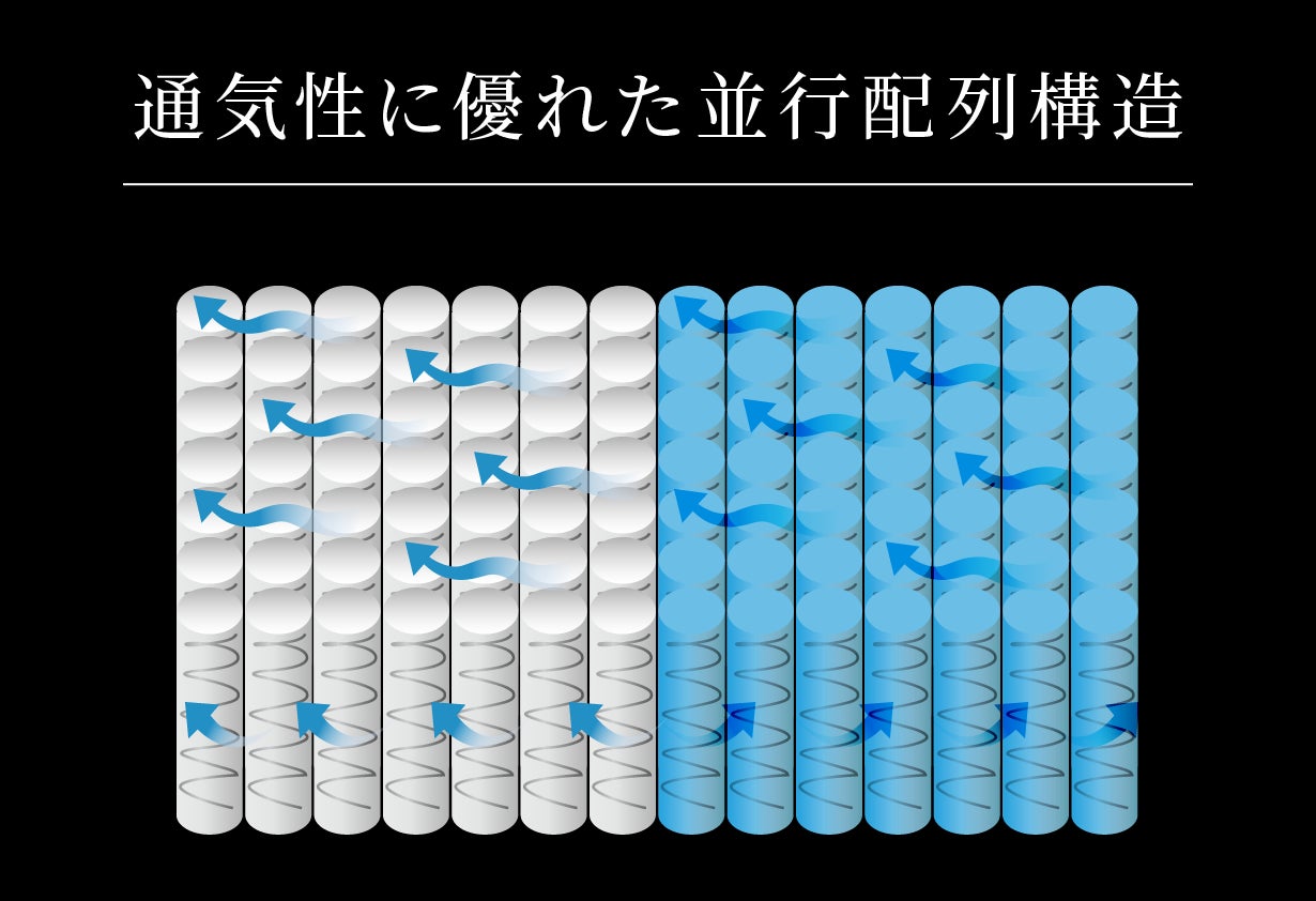 通気性に優れたコイル配列と高級ニット生地を採用し、一年中快適な寝心地を実現
