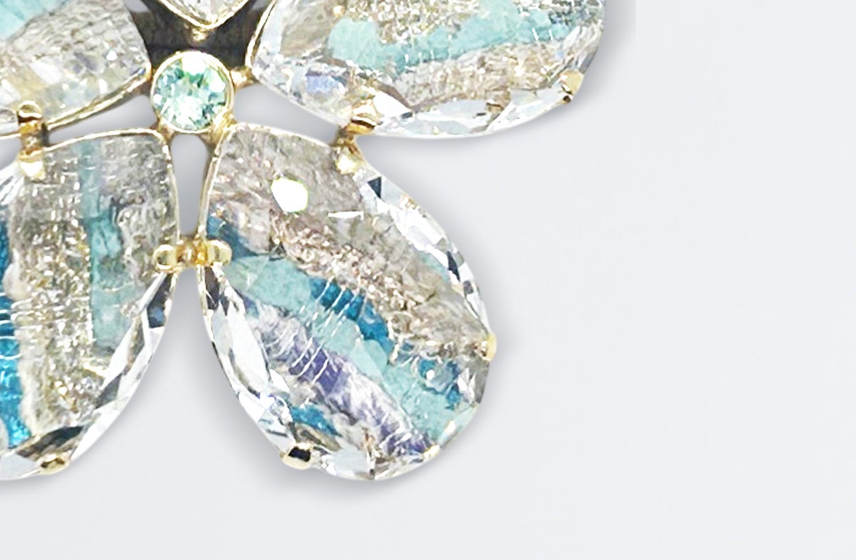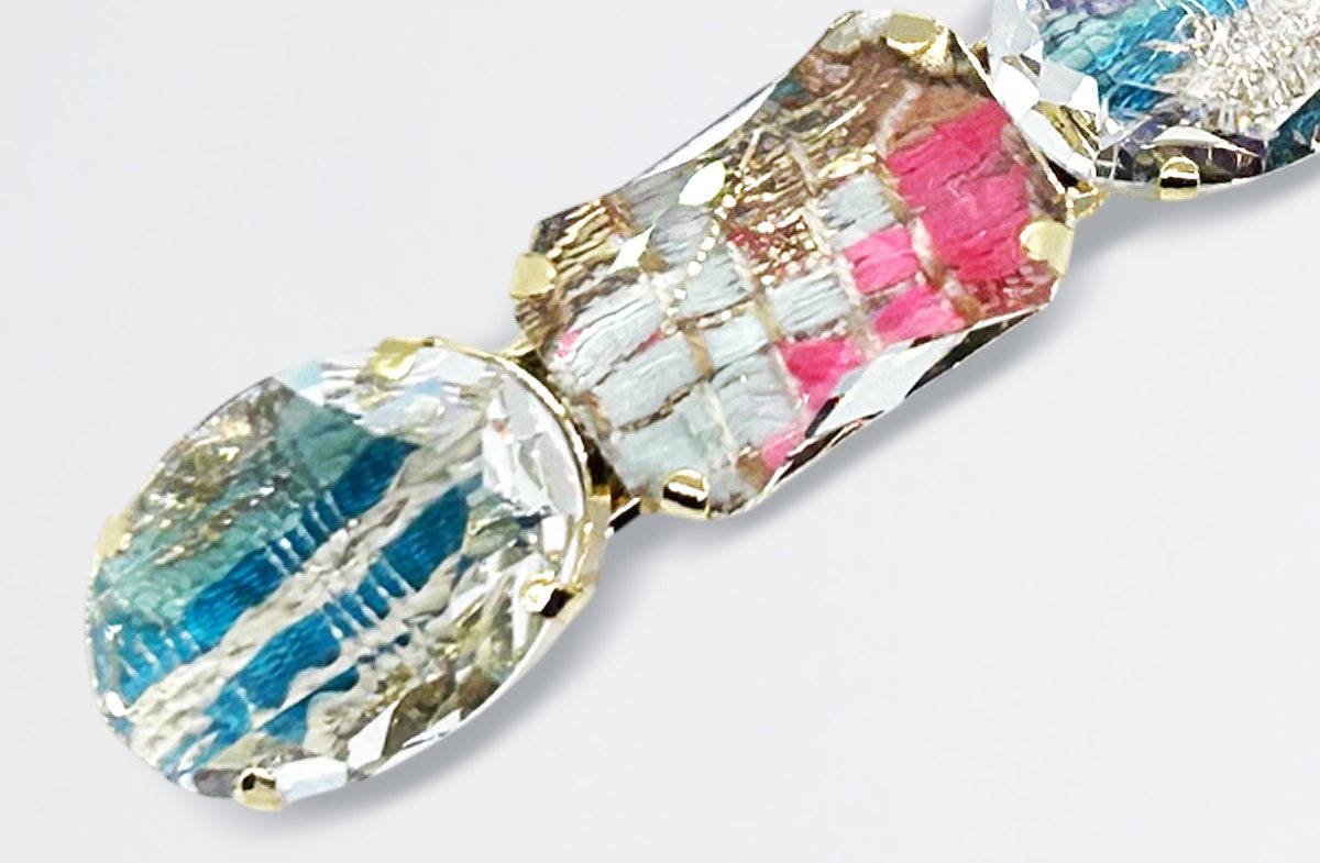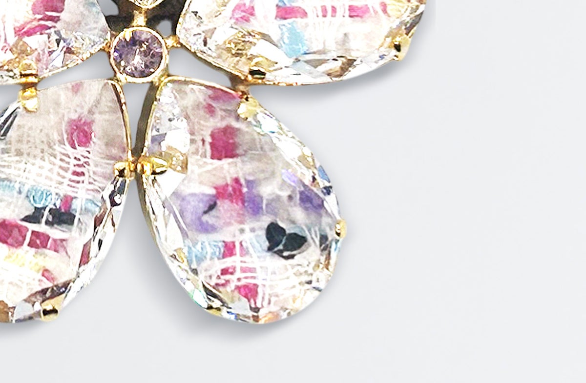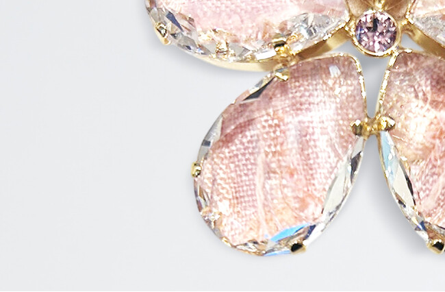 <THBT>オリジナル、存在感のあるクリスタルガラスとツイードのコンビネーションでモダンなSAKURAのコンセプトを表現したシリーズ。ツイードの表情豊かなテクスチャーがガラスの透明感と融合し、光をまとう新しいSAKURAの美しさ。イギリスの名門・リントンツイードに、透明度の高いクリスタルガラスを贅沢に配して。光を受けてきらめくクリスタルガラスと、ツイードの奥行きある質感。一瞬ごとに表情を変えながら、春の輝きをまとっていく。全11色の限定カラーは、それぞれの街やシーンをイメージした特別なラインナップ。ツイードのニュアンスに合わせて一本ずつ色を変えたヘアゴムなど、細部までSAKURAに恥じない美学を散りばめました。都会の空の下で多彩な輝きを放つ、あなただけの「SAKURA」を見つけて。