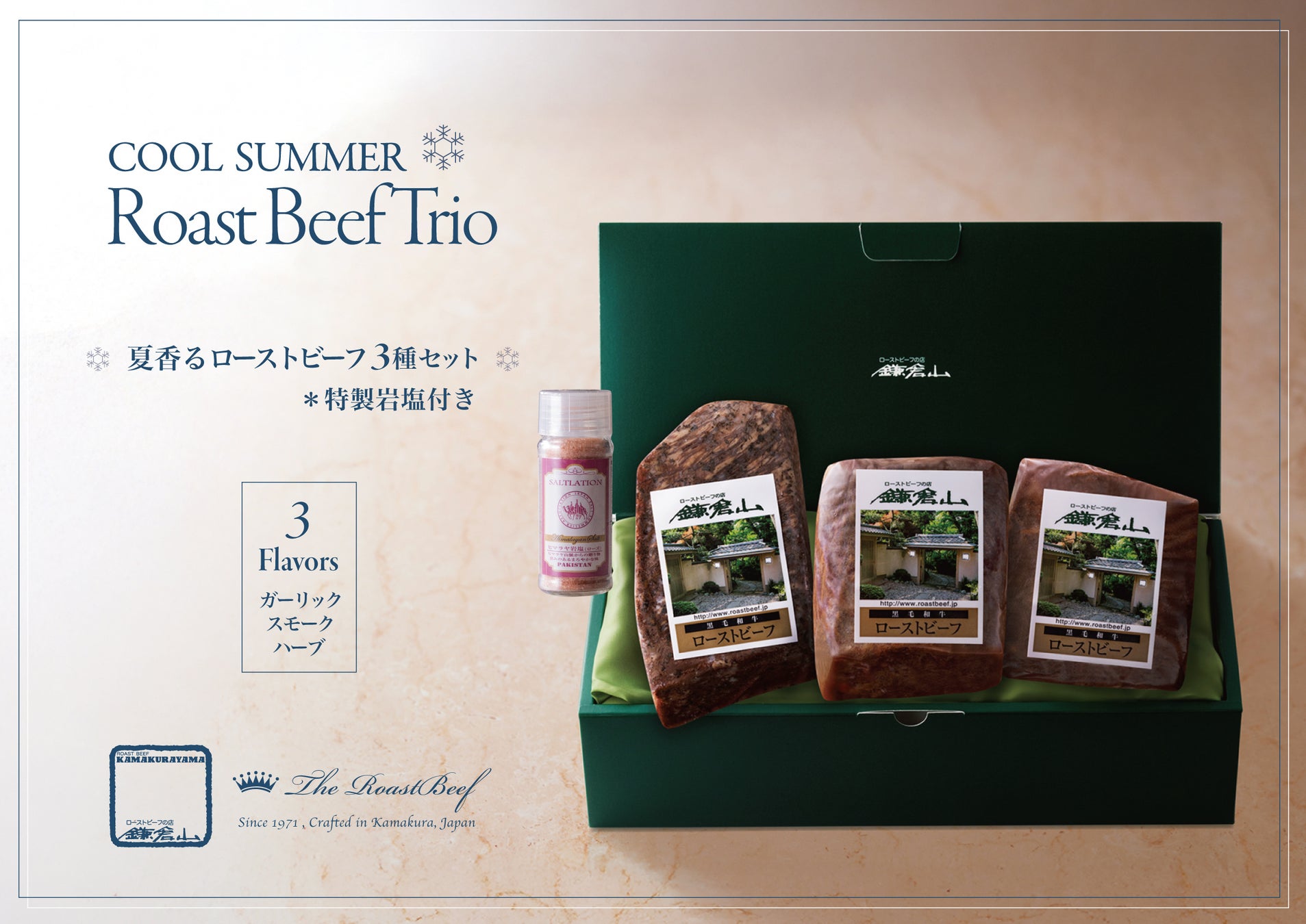 美食家に愛され続ける鎌倉の名店「ローストビーフの店 鎌倉山」から、夏の涼味をテーマに、香り豊かな三種の味わいを詰め合わせたお中元・夏ギフトにぴったりの【Cool Summer Roast Beef Trio】が、6月上旬より夏季限定で登場します。