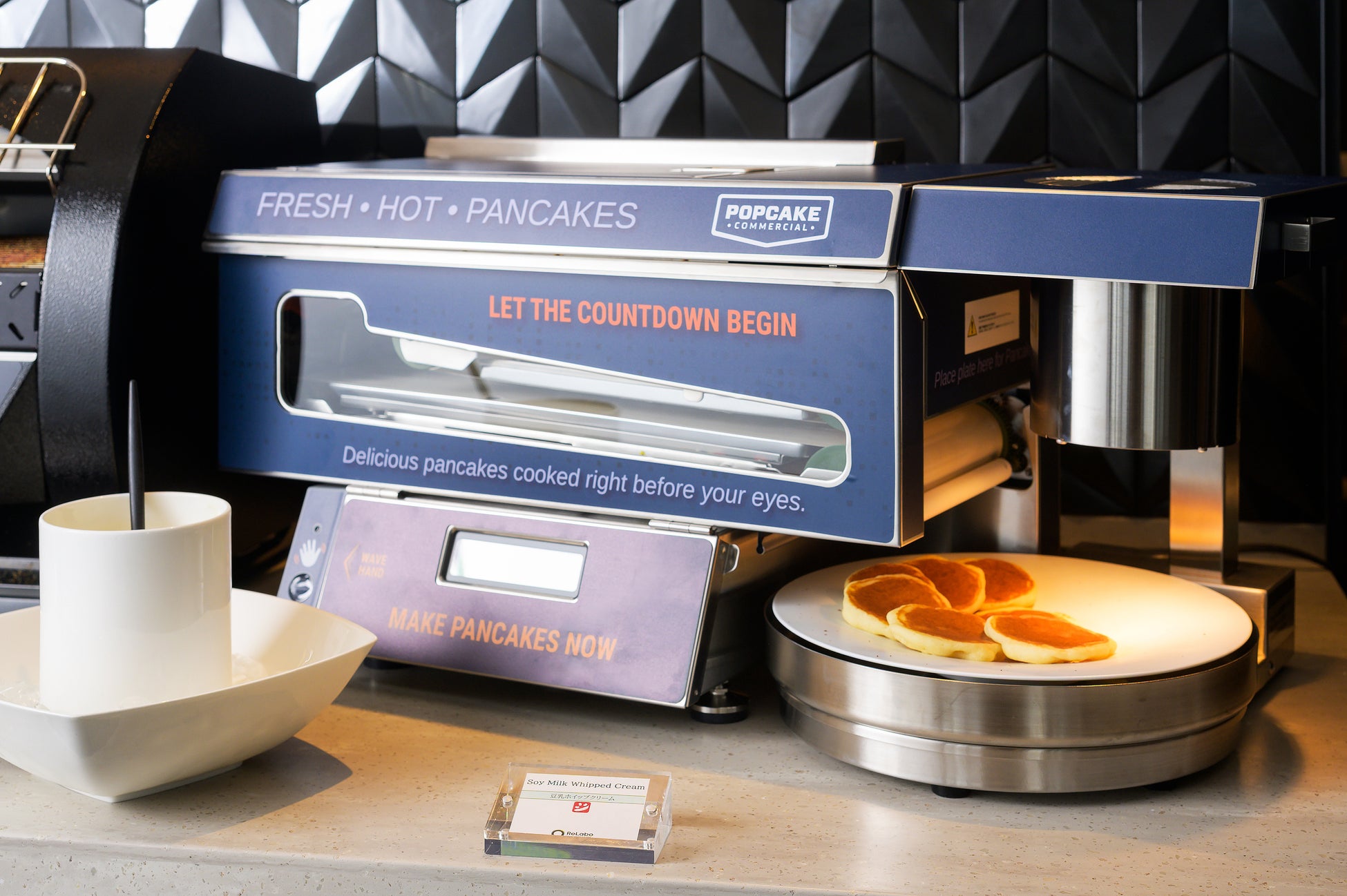 あえて、お刺身や郷土料理など旅の道中でたくさん召し上がってきたお料理をおかずに、エッグステーションでつくる自家製スモークサーモンのスモーブローや、青森りんごを使ったエッグベネディクト、帆立とカルヴァドスとクリームを使ったオージェ谷風のオムレツ、青森ではReLaboだけが設置している全自動パンケーキはお客様のタイミングで焼き立てが食べられます。