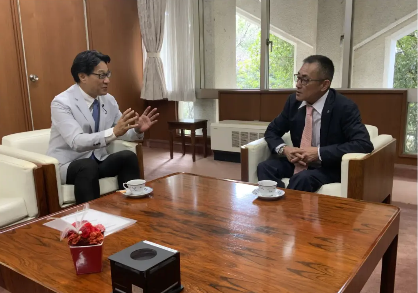 この理念に共鳴いただいた特派員である須藤和臣氏(元館林市長)のご紹介により、住民起点の行政経営を実践する第一人者、群馬県大泉町の村山俊明町長に取材の機会をいただきました。