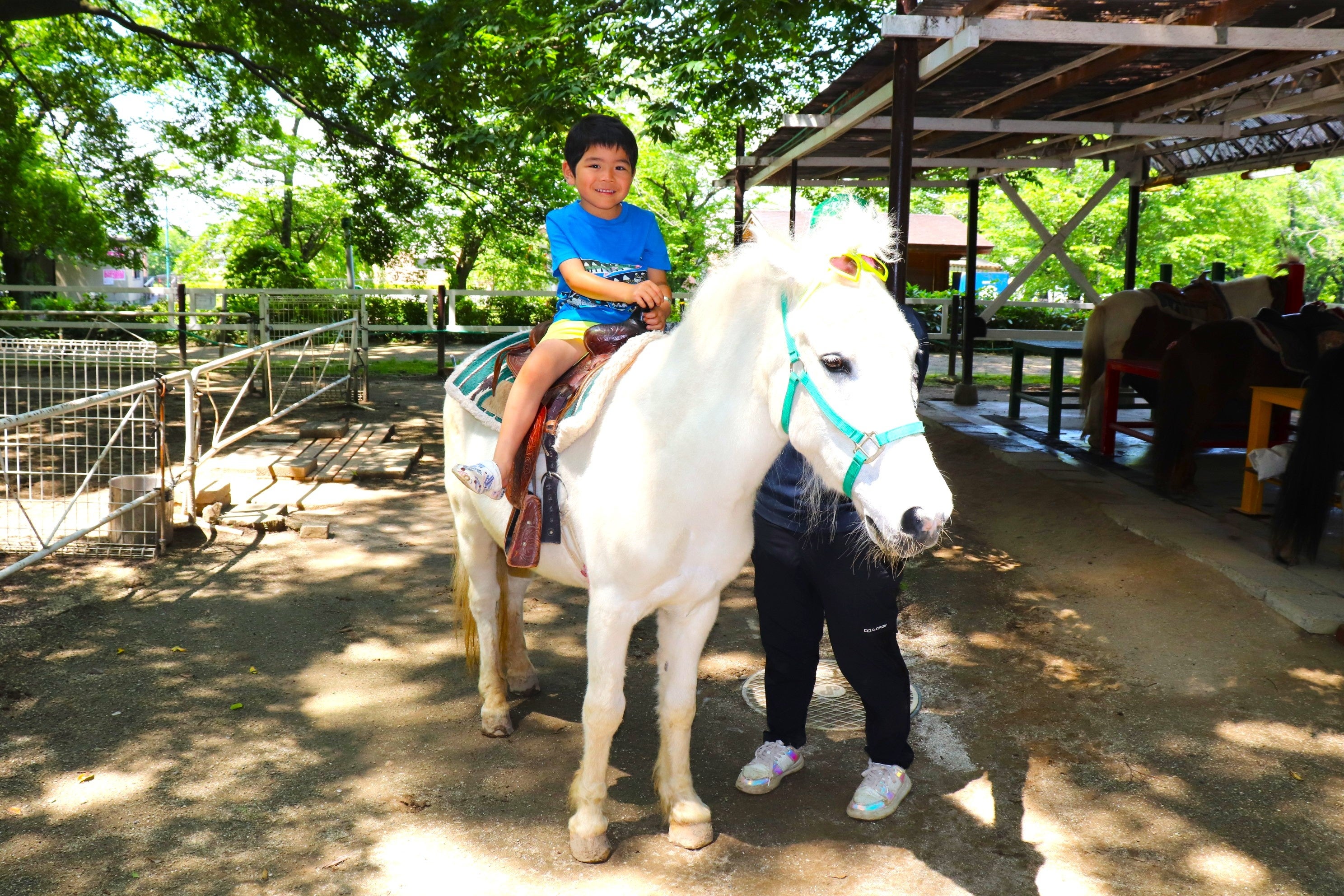 〈場所〉ふれあい牧場ポニー乗馬〈金額〉1,000円(写真撮影+缶バッチ)
