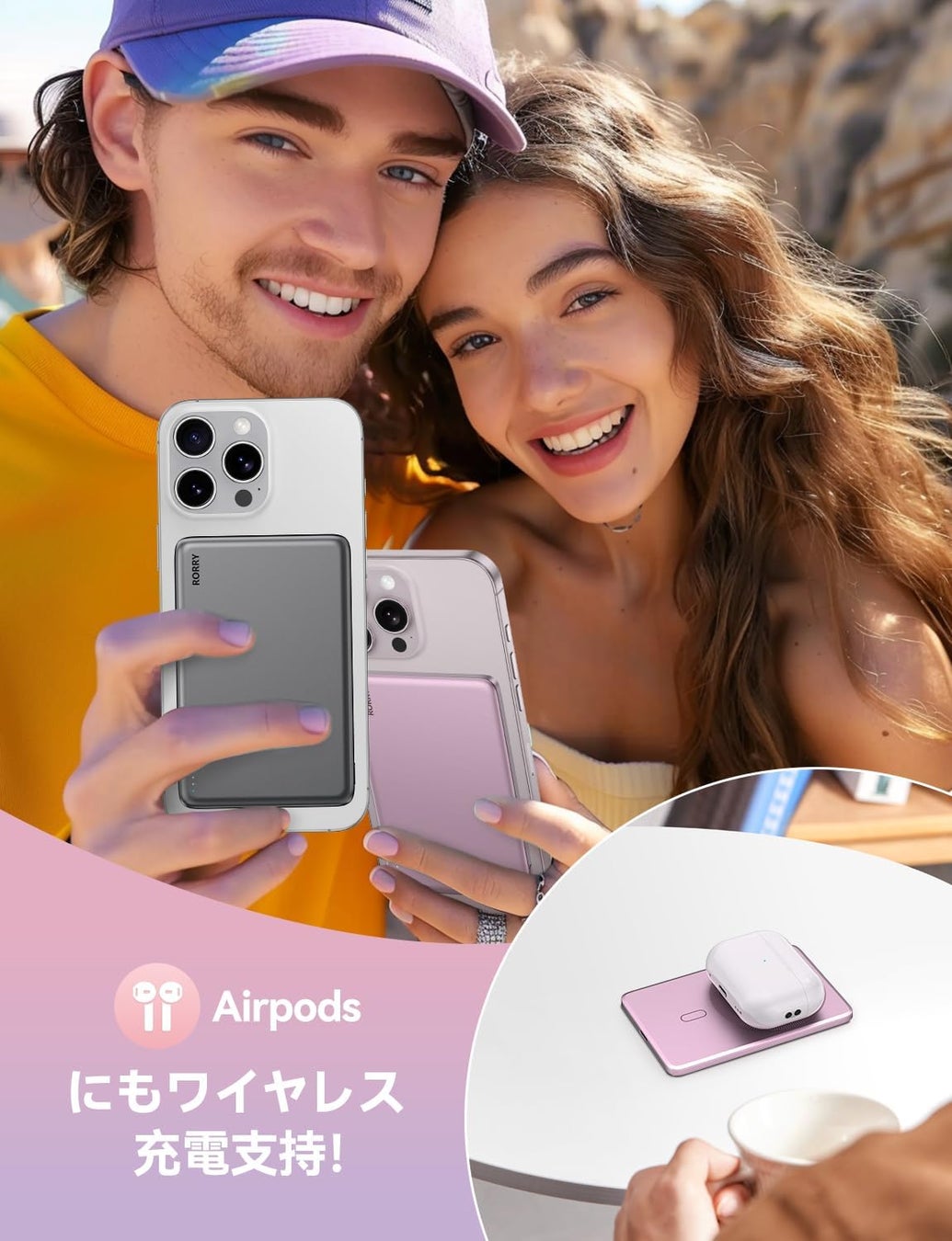 さらに、付属のメタルリングにより、MagSafe非対応のiPhoneやAndroid、イヤホンなどにも対応し、より多くのデバイスで活用できます。