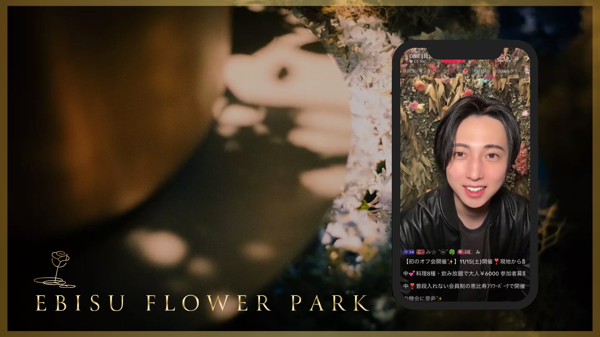 そんなONEさんの世界観と、「お花で日常を彩り、人生に感動を増やす」ことを目指すEBISU FLOWER PARKの理念が重なり、今回のライブ配信コラボレーションが実現しました。