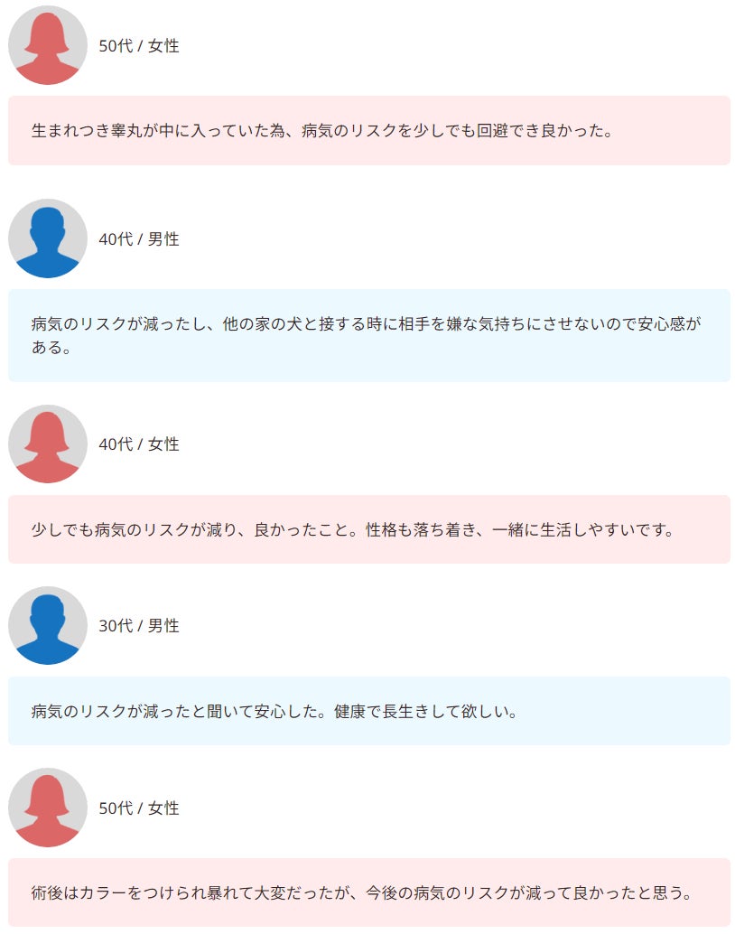 一方で「病気予防につながって安心した」「長生きしてほしい」といった前向きな意見も目立ち、最終的には手術を肯定的に捉える声が多く寄せられました。