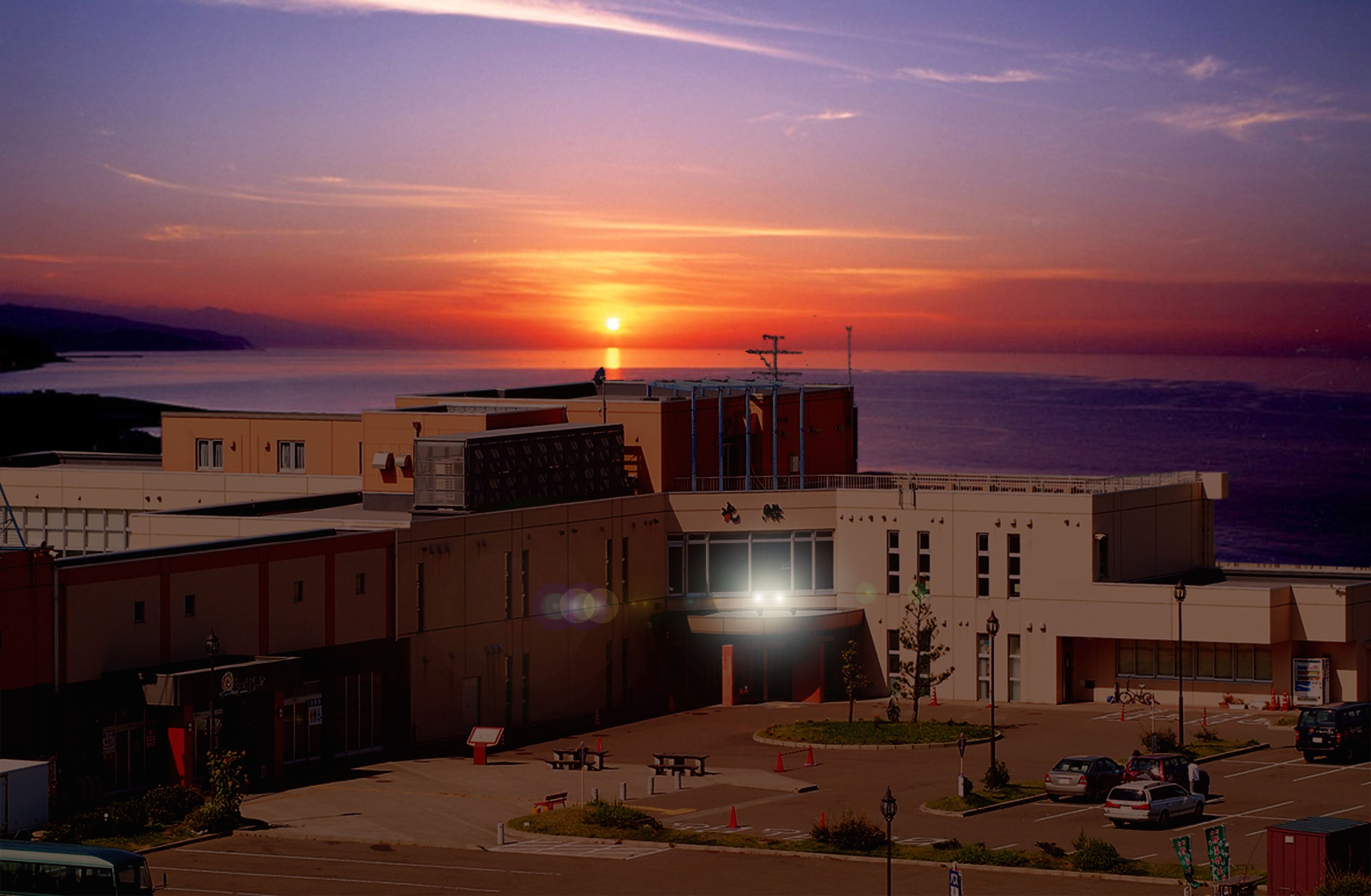 日本海を一望できるロケーションからは、夕日が空と海を茜色に染める幻想的な景色が広がります。