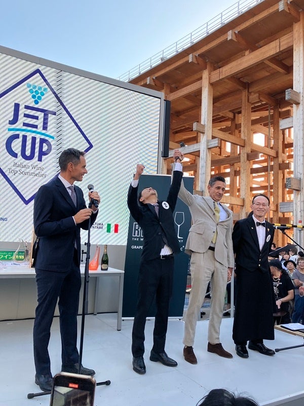 表彰式では、大阪・関西万博イタリア政府代表のマリオ・アンドレア・ヴァッターニ氏が挨拶され“2025年のJETCUPの決勝戦は、大阪・関西万博で開催される。優勝した山田氏はイタリア館のアンバサダーに任命され、万博の期間中イタリアのワインや食文化の魅力を発信する役割となる。頑張ってください。”と述べられました。