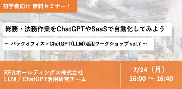 「総務・法務の事務作業をAI(ChatGPT)・SaaSで自動化」ウェビナーを7月24日(月)16時00分から無料開催