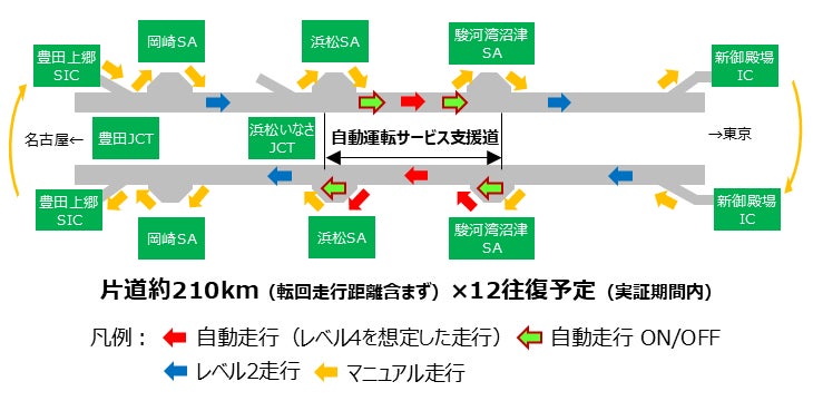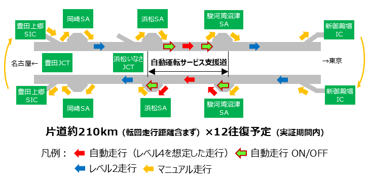 ・駿河湾沼津SAおよび浜松SAでの自動発着・合流支援による自動合流