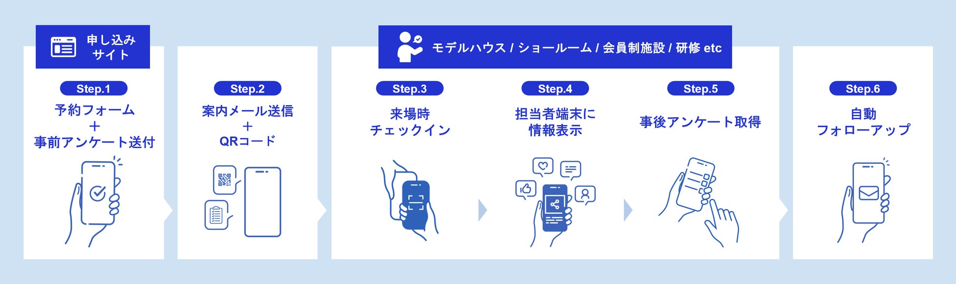 本サービスは、世界140カ国143,000社以上に導入されているカスタマープラットフォーム「HubSpot」と、デジタルエクスペリエンスが開発したQRコードチェックインツール「Visit Log」を連携させて提供します。この連携により、オンラインでの来訪予約から、専用QRコードの発行、自動でのメール・アンケート送付、そして現地でのQRコードによる受付チェックイン、来訪時の接客対応記録、事後アンケートまでを、一気通貫で実現します。