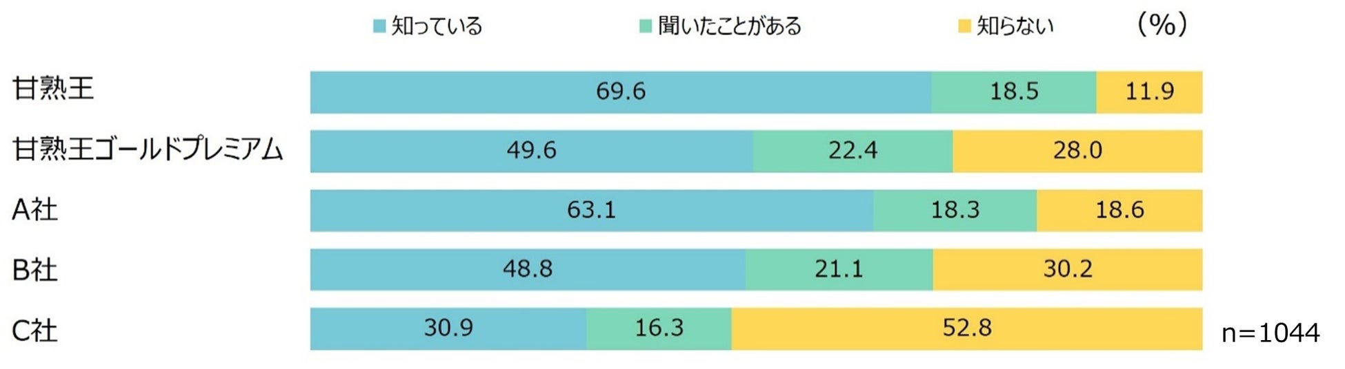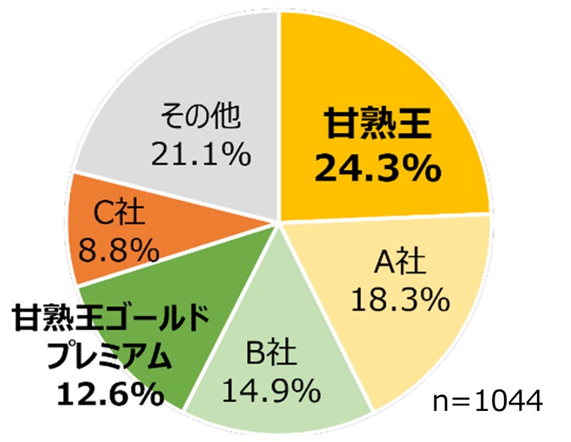 当社が満50周年を契機に行った消費者アンケート※では、「甘熟王」の認知は約7割に上り、もっとも認知されている高地栽培バナナブランドであることが明らかになっており、さらに「もっとも好きな高地栽培バナナブランド」としても24.3%でトップに。「甘熟王ゴールドプレミアム」と合わせると、3人に1人が『甘熟王』シリーズを最も好きと回答する結果となりました。