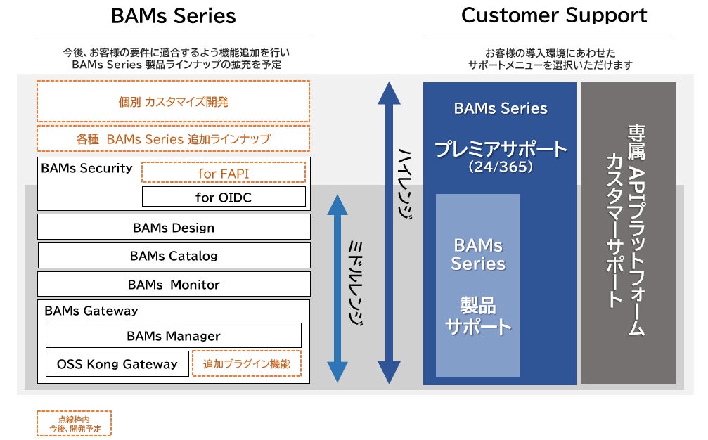 「BAMs Seriesプレミアサポート」は、BAMs Series Platinum サブスクリプションを購入頂いたお客様を対象として、追加費用にて選択いただけるサポートメニューです。より慎重かつ安定的なAPI管理を希望されるお客様に対し、通常の製品サポート(平日9時~17時内での対応)に加えて24時間365日対応のメニューとして提供をしてまいります。