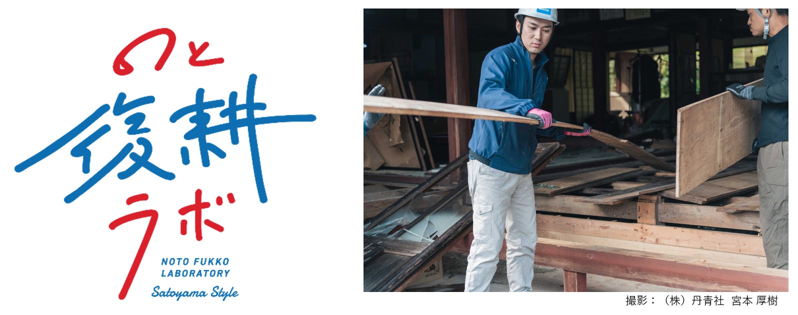 また、創造的復興のために、解体建築物から古材を回収し新たな建築物に活用する「のと古材レスキュープロジェクト」を、商業施設や文化施設の空間づくりを行う株式会社丹青社の協力を得て実施。能登ヒバ林業地における自伐型林業プロジェクトを一般社団法人ふくい美山きときとき隊の協力を得て行っています。