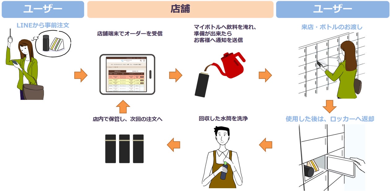 マイボトル(自分専用のリユース容器)を利用したモバイルオーダーサービス