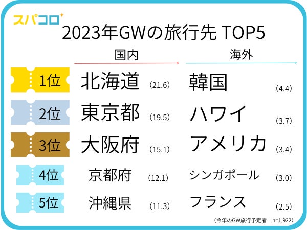 ■コロナ規制が緩和されてきた2023年。今年のGWの旅行先 国内・海外TOP5は?