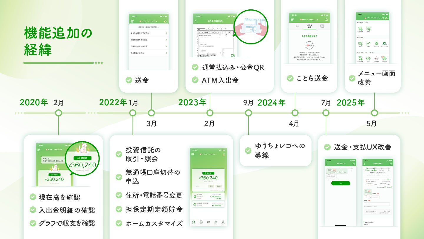 リリース時から「やさしいデザインとシンプルな操作性」 をコンセプトに、より便利に利用できるよう順次機能を拡充しています。