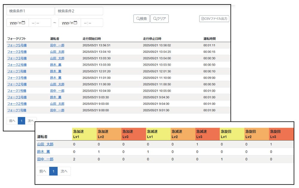 CSV出力:期間・車両・運転者単位でログを抽出し、Excel 集計や社内報告に活用