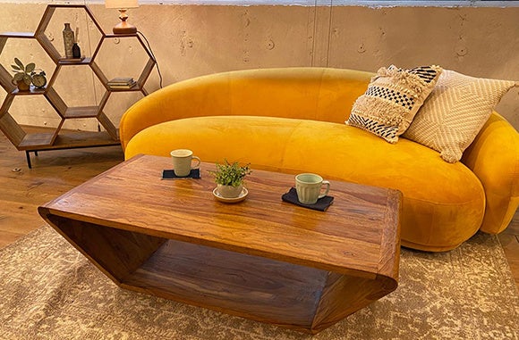 ミッドセンチュリーの雰囲気を感じさせる珍しいデザインは、ホテルのラウンジのような非日常を味わえます。生活感をなくして、ソファとローテーブルだけ、というコーディネートにすると“非日常”に近づけられます。