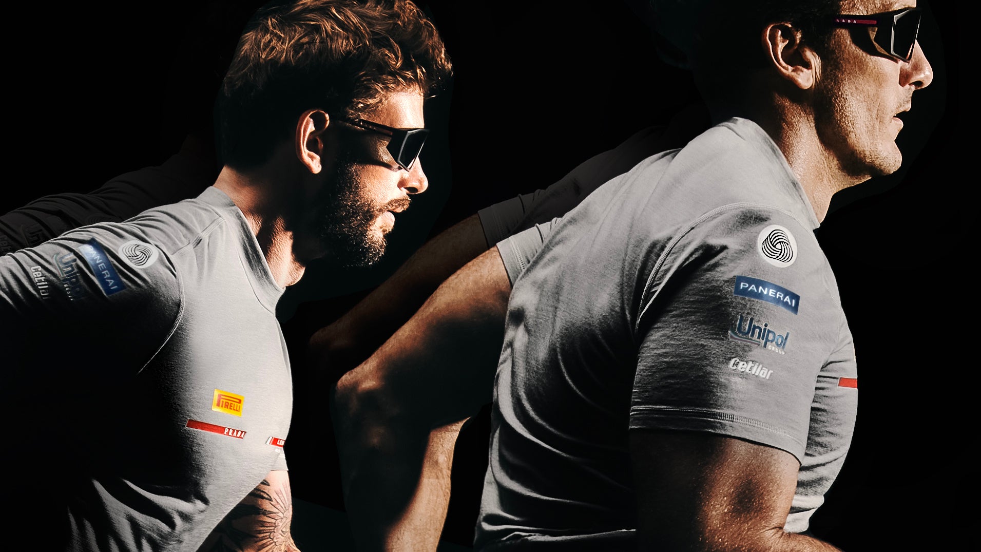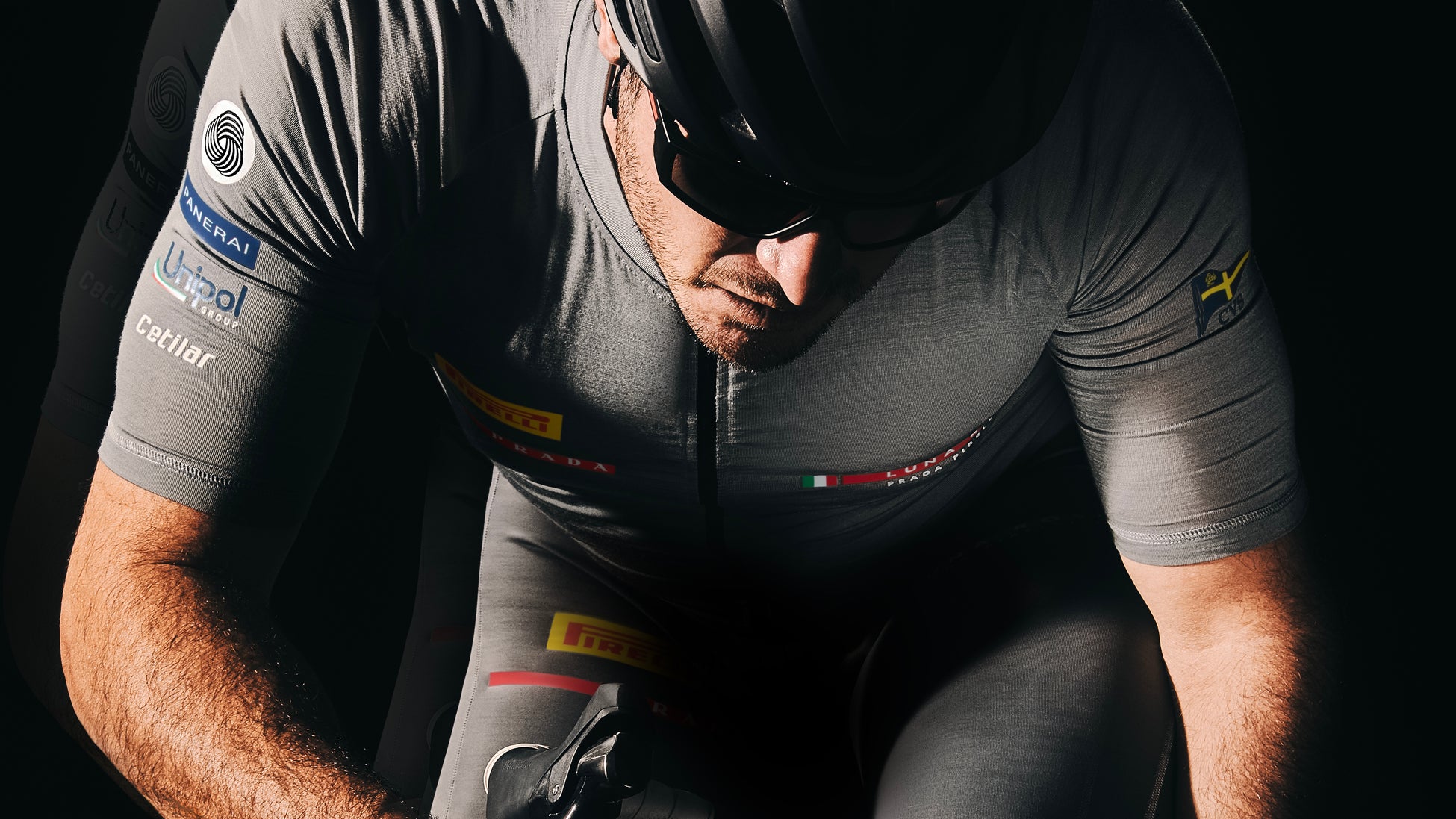 サイクリングスーツも、ルナ・ロッサ プラダ ピレリ チームが直面する過酷な条件にも対応できるよう特別にデザインされたものです。メリノウールを贅沢に使用した革新的な素材のインターロックスーツは、温度調節と湿度管理の機能が強化され、さまざまな気象条件と強度レベルで優れた性能を発揮します。