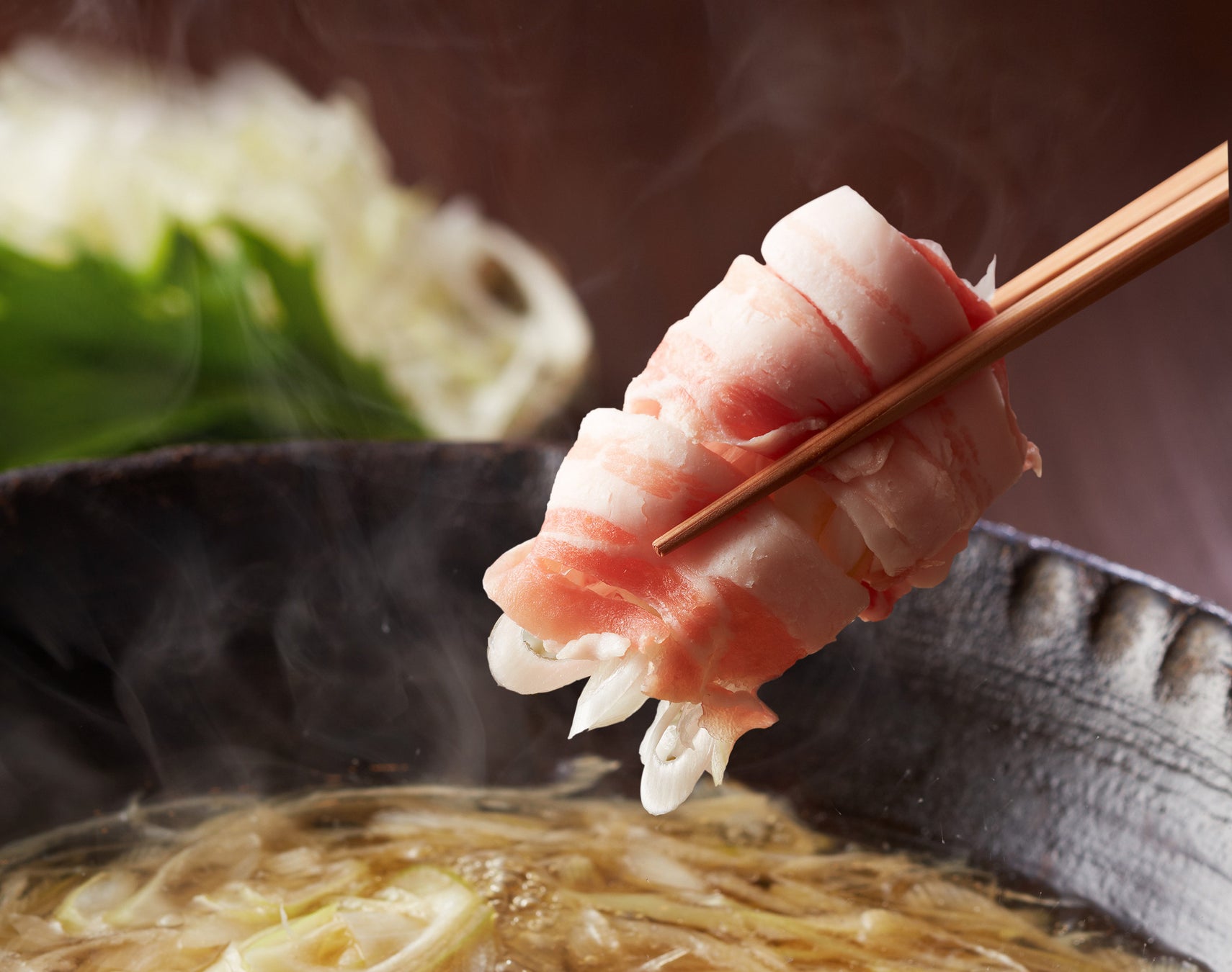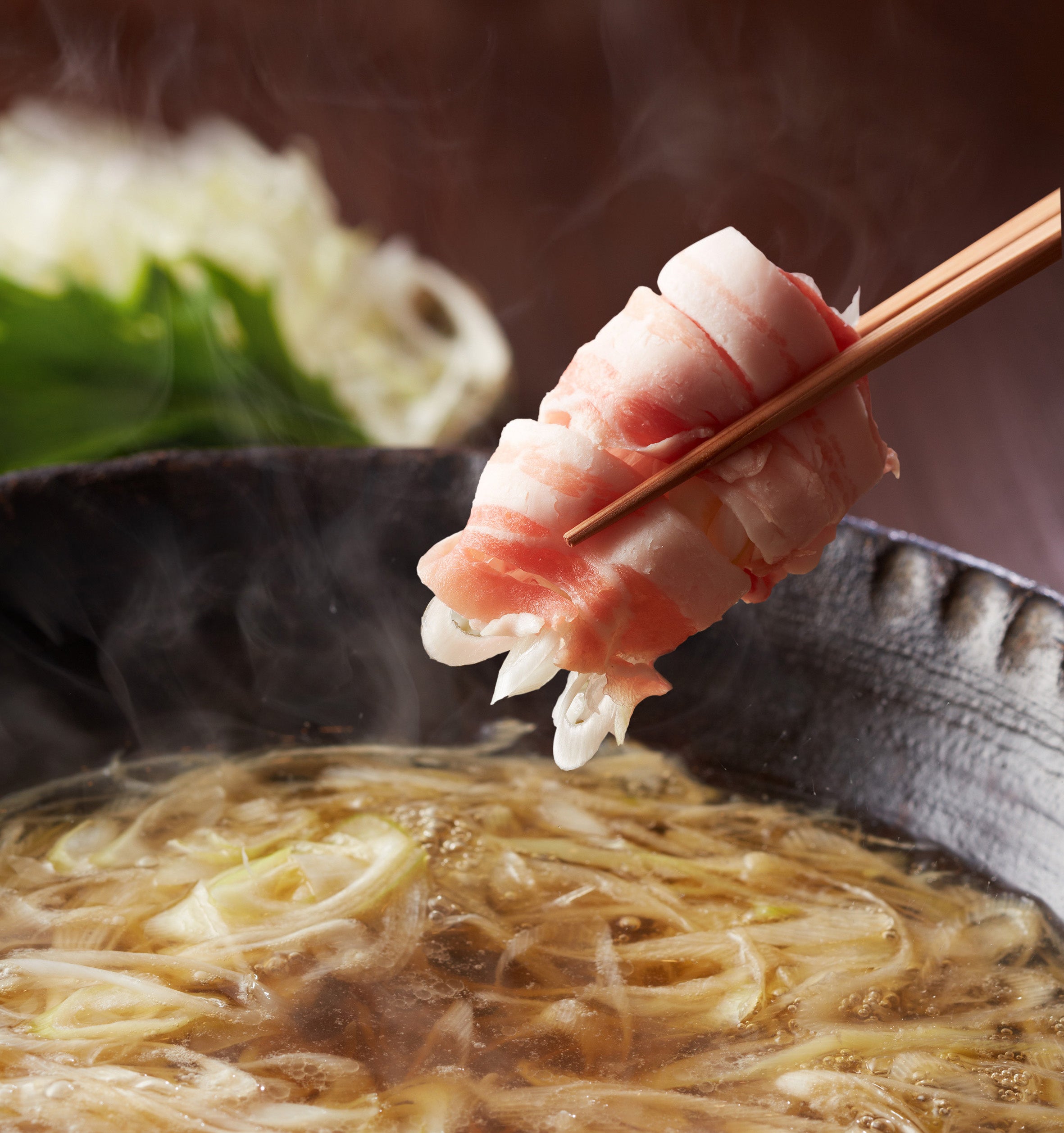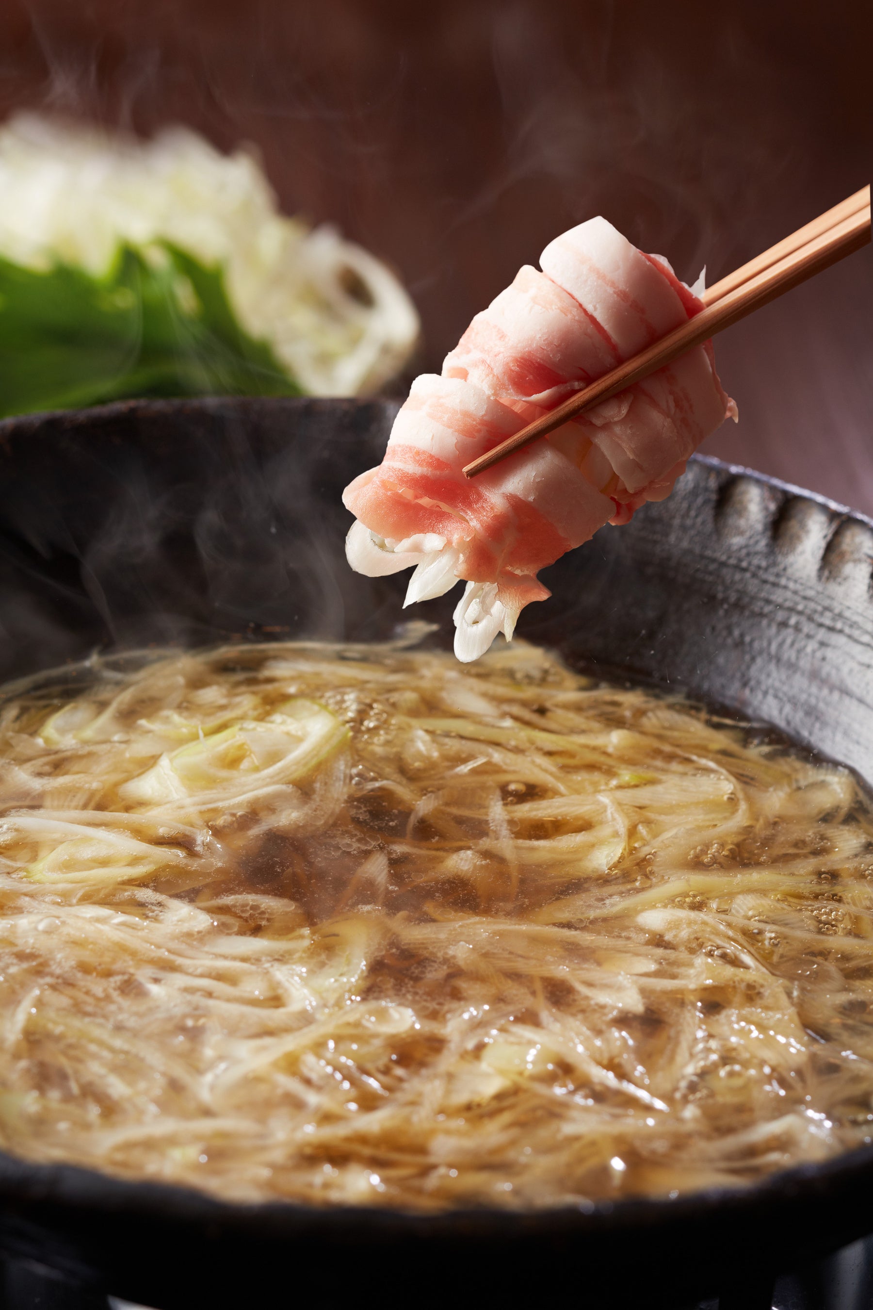 和食の職人が心を込めて仕上げるお出汁、沖縄豚の甘みと葱の香りとともに