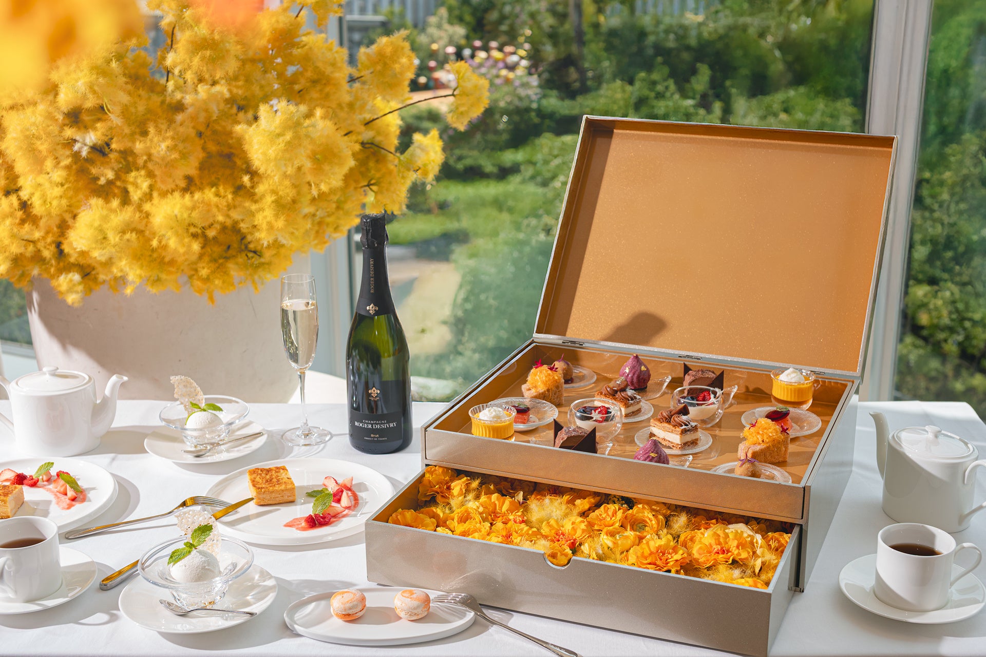 秋の香りが包む緑あふれるザ ジャクソン ガーデンで優雅なひとときを。パティスリーパブロフのパティシエ近藤が監修した、秋の恵みを贅沢に詰め込んだアフタヌーンティーBOXが登場します。旬な食材を使用し、香ばしいパイ仕立てのモンブランや、上品な酸味のカシスのババロア、濃厚なダブルチョコムースの4種のスイーツをご用意しました。特製の焼き立てフレンチトーストと出来立てミルクジェラートが、五感を満たす贅沢な味わいを演出します。セイボリーには、トリュフの香り豊かな南瓜の冷製スープや、巨峰とビーツを合わせたサーモンのコンフィ、秋色のベリーソースがアクセントのポークリエットのクロケットなどが彩りを添え、秋の実りを心ゆくまでお楽しみいただけます。ザ ジャクソン ガーデンで、秋の深まりとともに過ごす特別な時間をぜひご堪能ください。