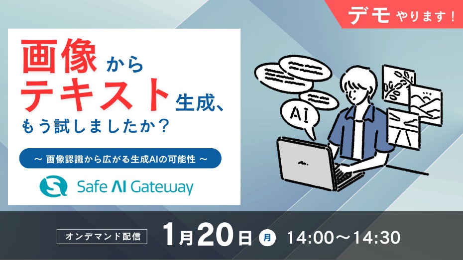 この度の受賞を記念し「Safe AI Gateway」 に搭載された新機能である画像認識の活用例について、デモを交えてご紹介するセミナーを開催いたします。生成AIの活用を検討している方、生成AI活用の知見を深めたい方は是非ご参加ください。