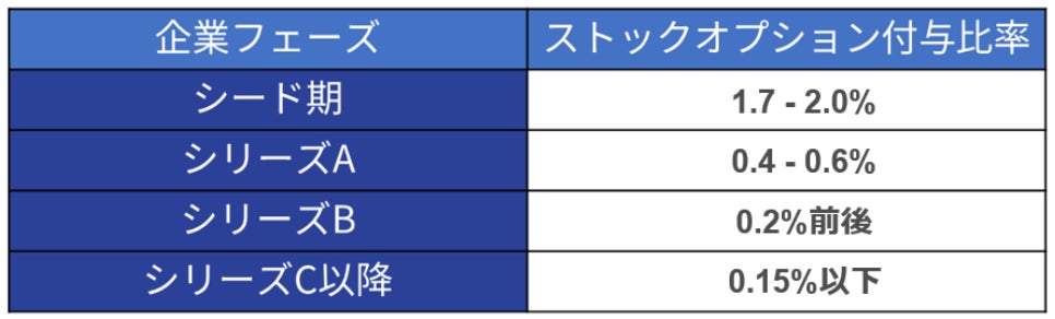 [表2:スタートアップ入社時に付与されるストックオプション相場(1人あたり)]