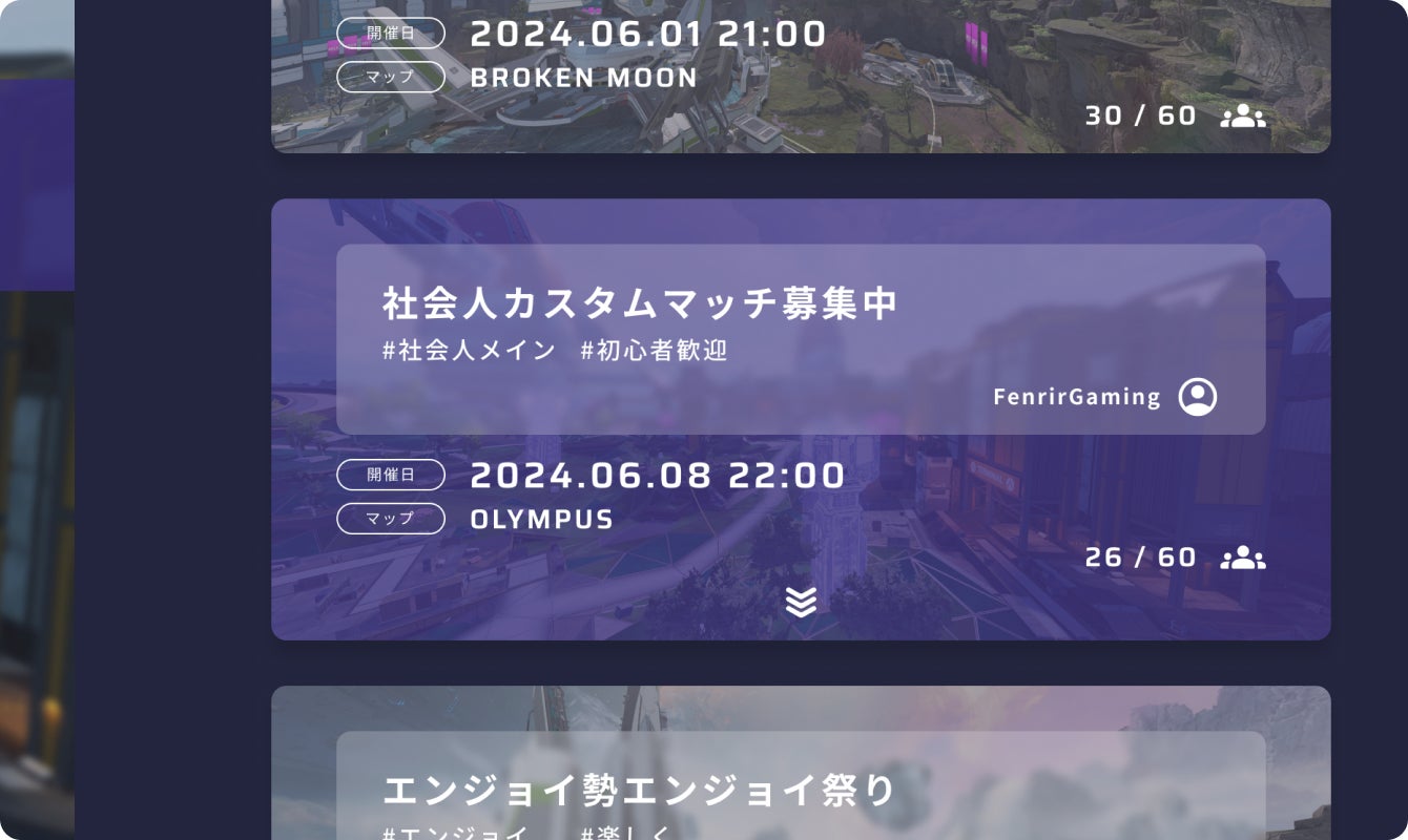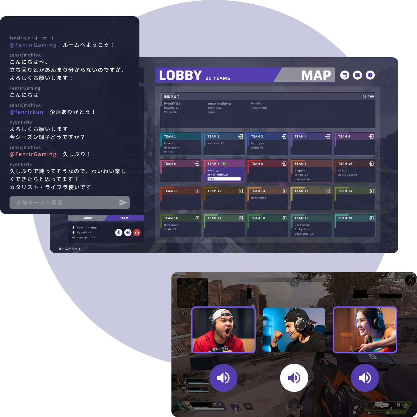3人1チームで壮大なステージを攻略するには、的確な戦略と仲間とのコミュニケーションが勝敗の鍵を握ります。プレイヤーはスケジュール調整やコミュニケーションなど、目的に合わせてさまざまなツールを活用するため、情報が分散されてしまうのが課題でした。WINNITYは、オンラインゲームの「集まる・参加する・連携する」という一連のアクションをひとつの場所で完了できるコミュニケーションプラットフォームです。仲間との連携をスムーズにして Apex Legends ™ をより快適に楽しむことができます。