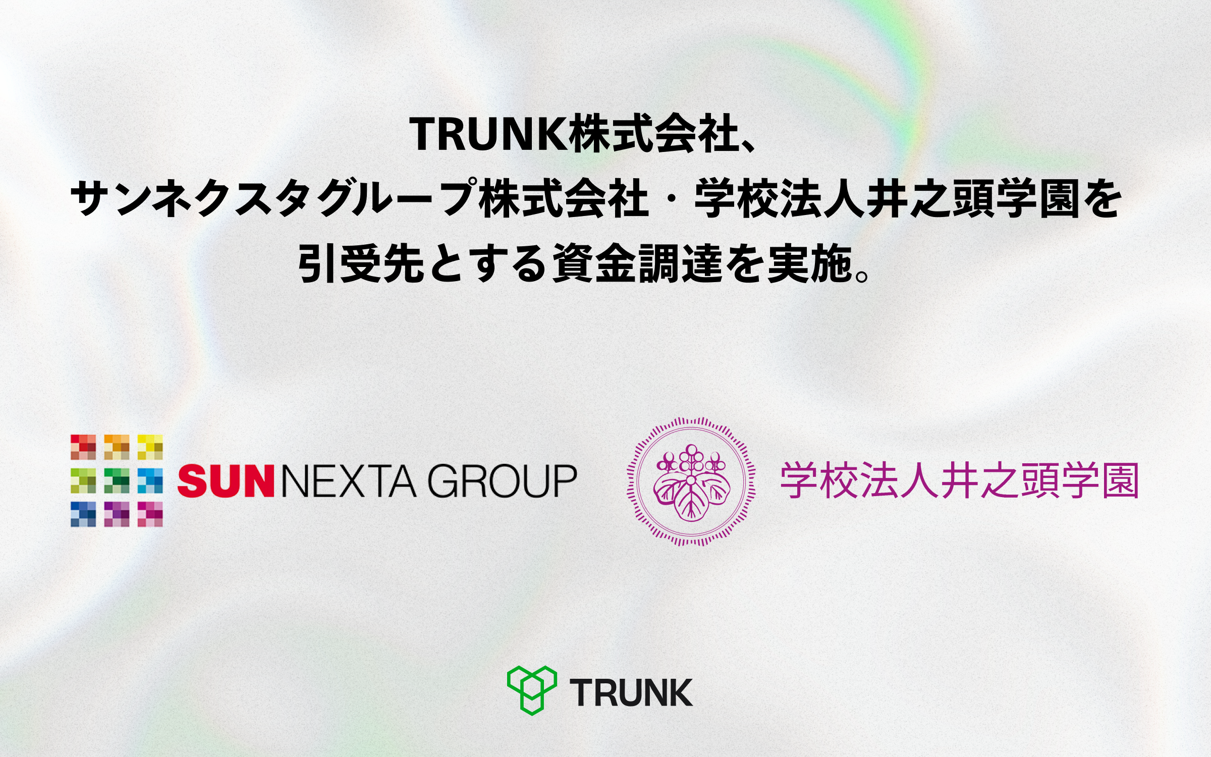 TRUNK株式会社が、サンネクスタグループ株式会社、学校法人井之頭学園を引受先とする資金調達を実施。